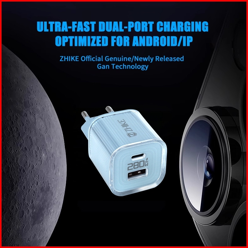 Zhike Charger Type C To Type C Kabel Dengan 280w Adaptor Gan 1m Fast Charging Cable Chip Port Ganda Adapter Penutup Sili