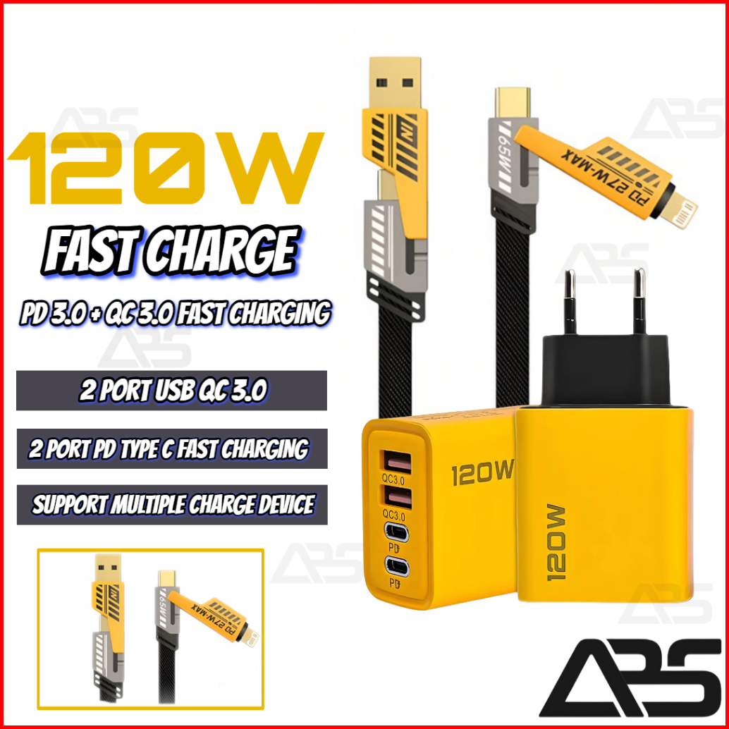 Charger 120w Batok 120w Kabel 4 In 1 65w Fast Charging Pd Type C To C 4 Port Kabel Casan 4in1 Tipe C Usb Ios Lightning U