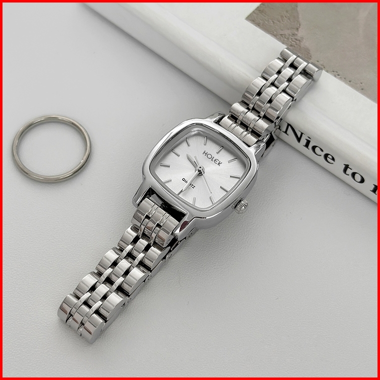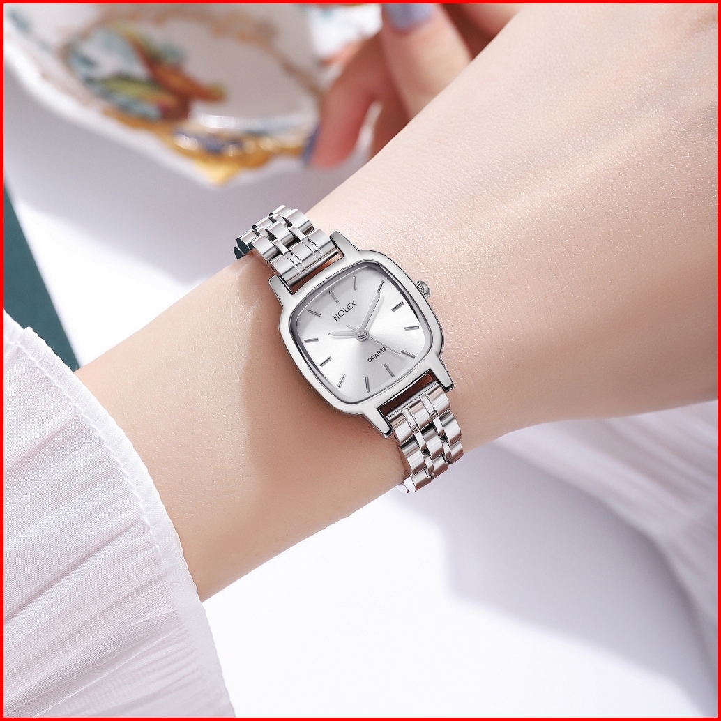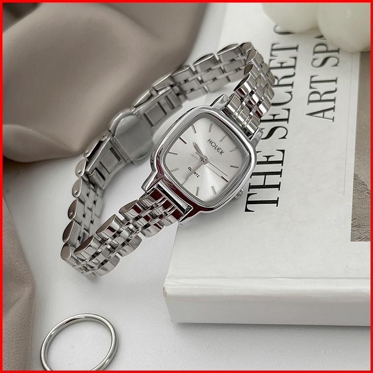 Holek 20125 Jam Tangan Wanita Original Baru Kecil Elegan Mewah Kasual Persegi Tali Stainless Steel Jam Tangan Wanita Tah