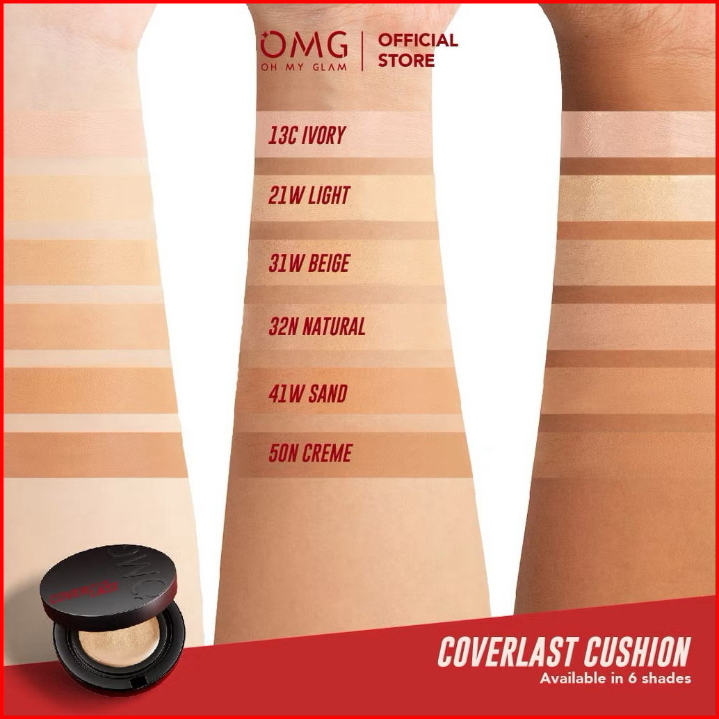 Omg Oh My Glam Coverlast Cushion 15g - No Oxidize 12 Jam Cushion Foundation Concealer Skin Tint Make Up High Coverage De