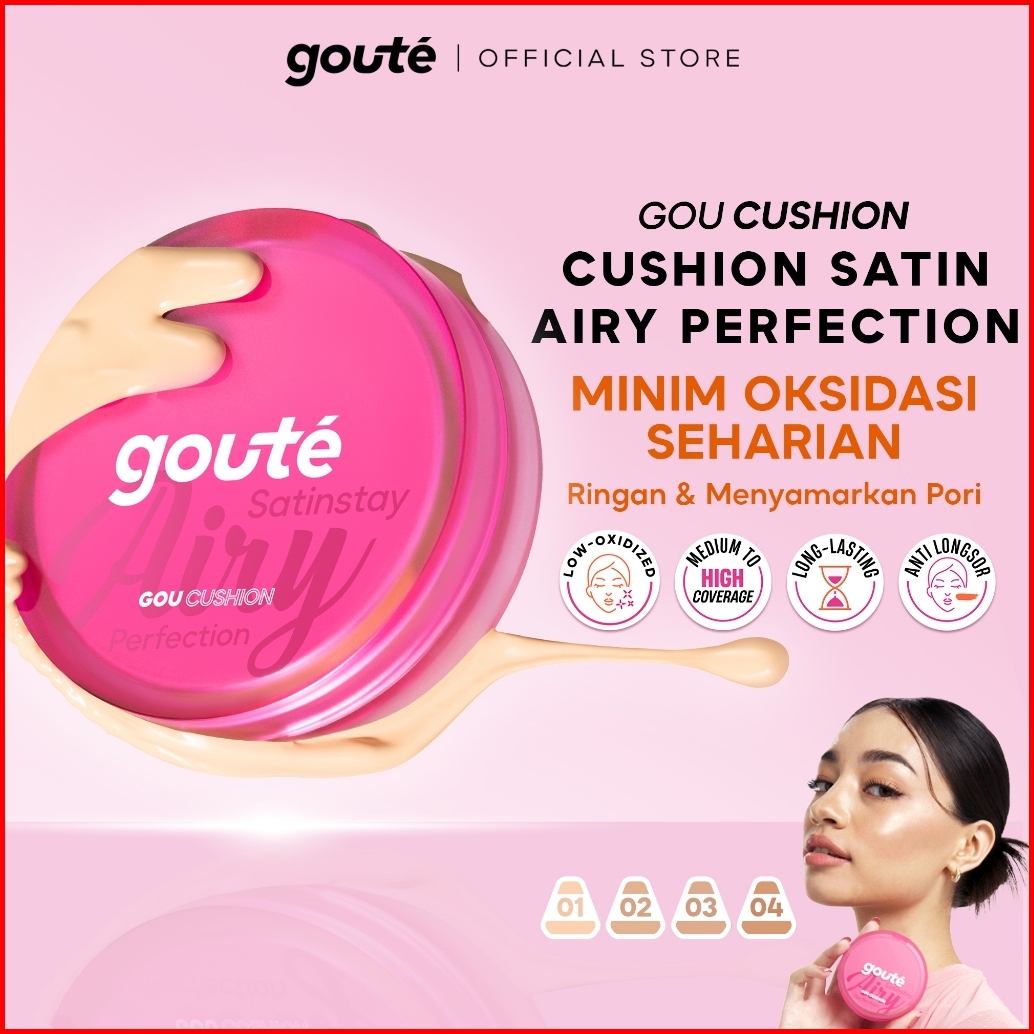 Goute Cushion Satin Stay Airy Perfection - Ringan Menyamarkan Pori Minim Oksidasi Tahan Lama Long Lasting