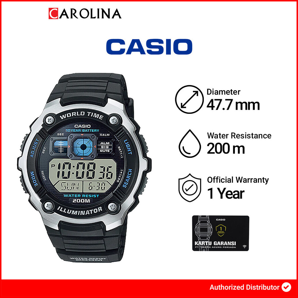 Jam Tangan Pria Casio General Ae-2000w-1a Water Resistant 200m Black Resin Band