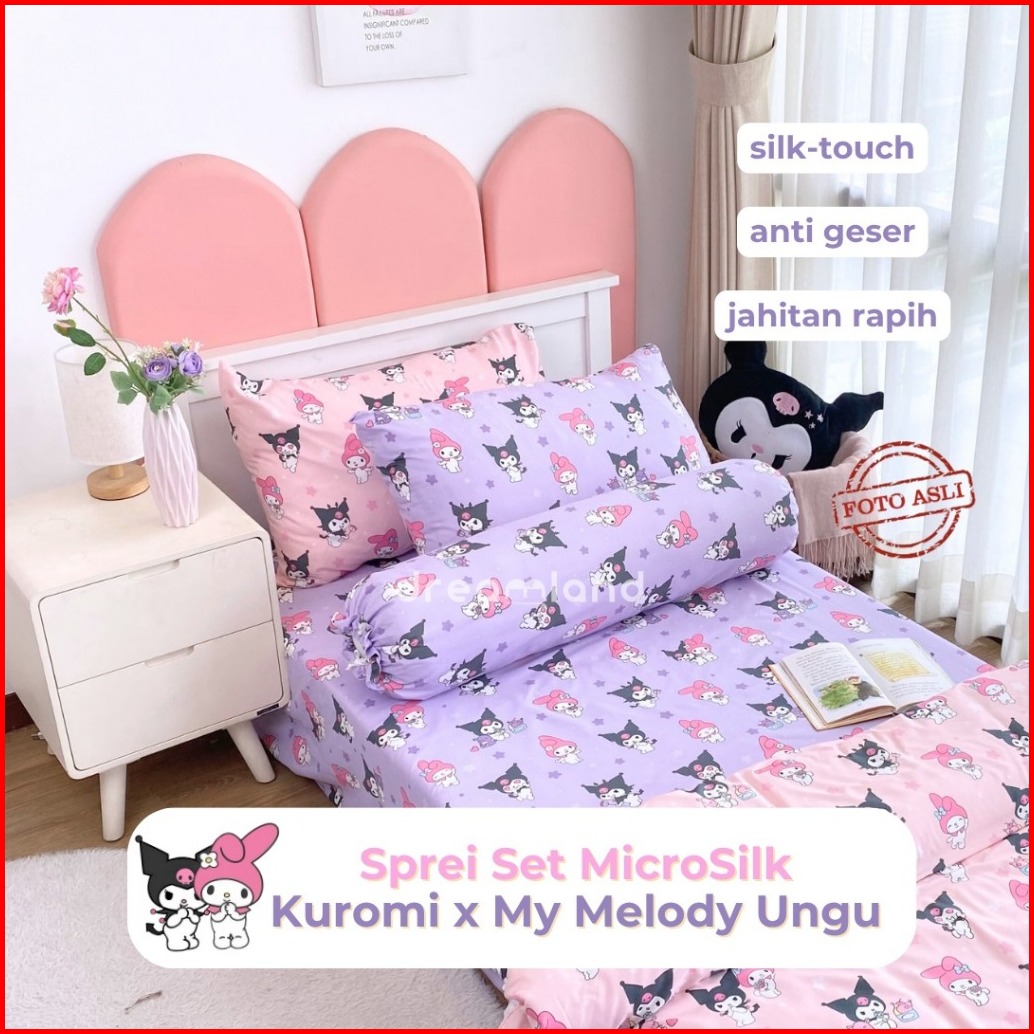 Dreamland Sprei Set Karakter Microsilk Ready Stock Labubu Kuromi Cinnamoroll My Melody