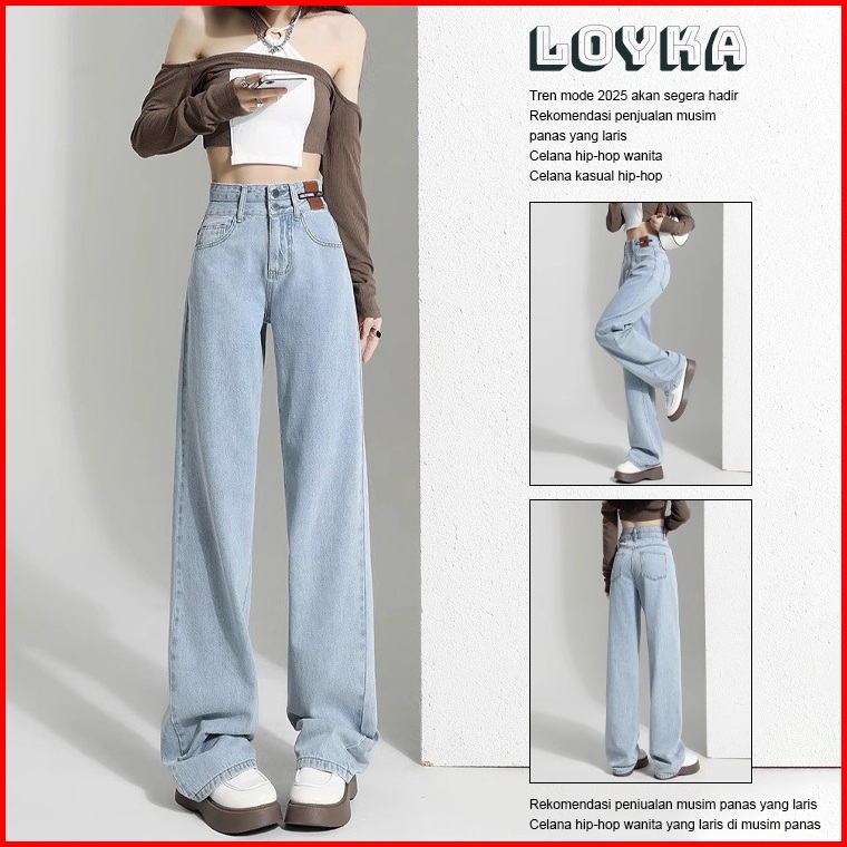 Loyka Highwaist Kulot Loose Jeans Wanita Korea Straight Celana Jeans Wanita Kekinian