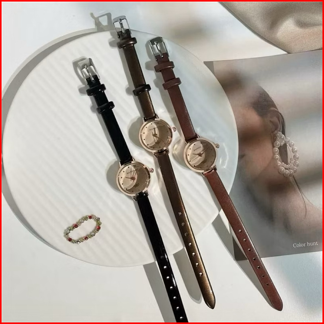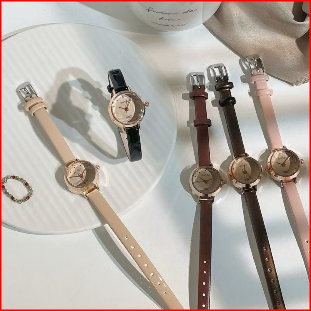 Free Gelang Jam Tangan Barsh Wanita Fashion Analog Jam Angka Mini Kecil Jam Tali Kulit Versi Korea Vintage