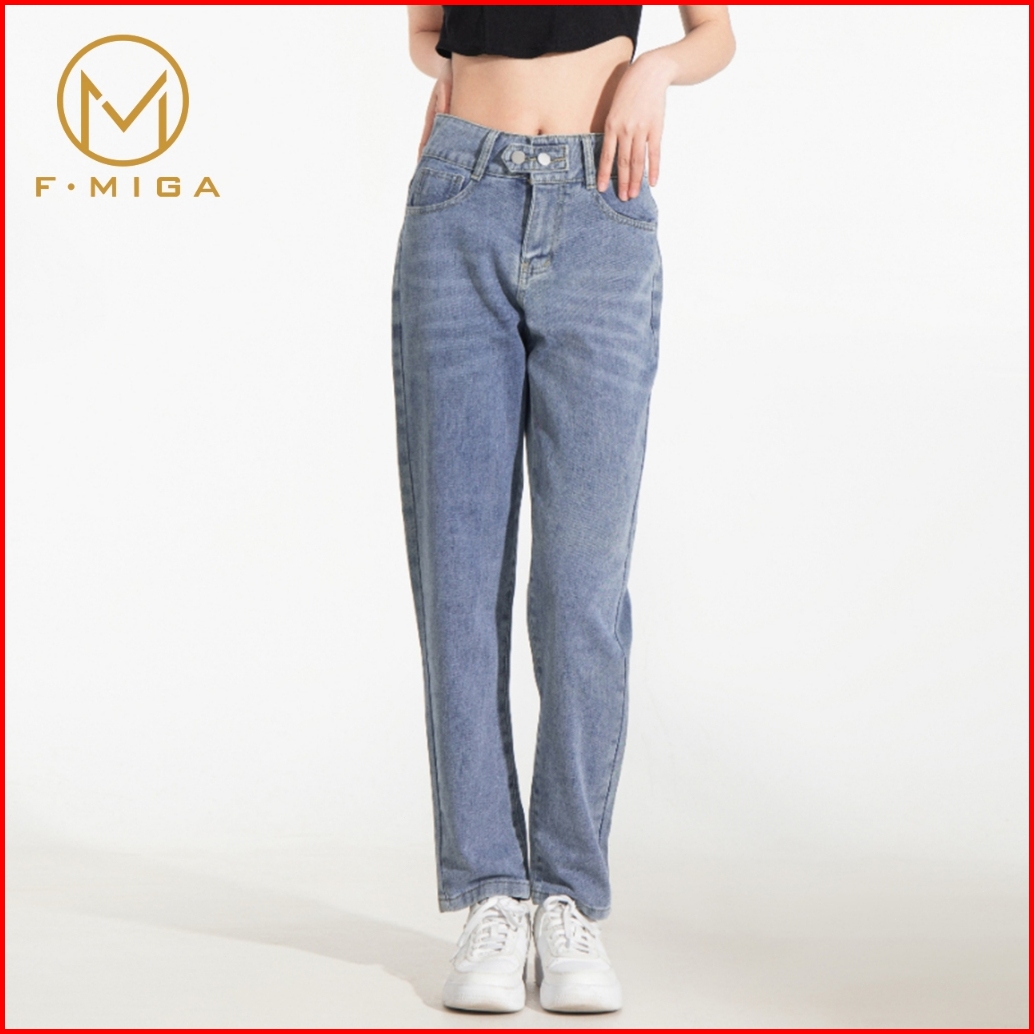 F Miga C35 High Waist Korean Wanita Jeans Straight Celana Panjang-biru