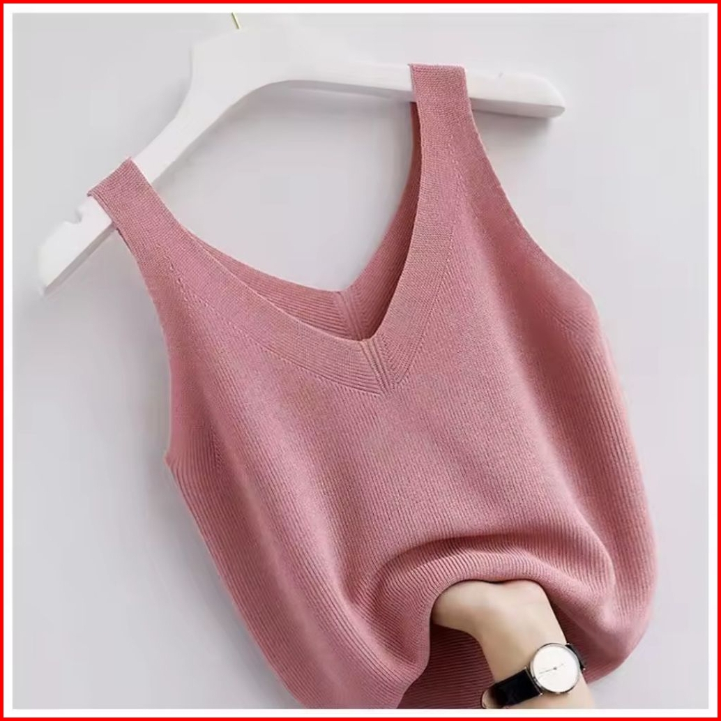 Tank Top Wanita Blouse V Top Tank Top Polos Wanita Dewasa