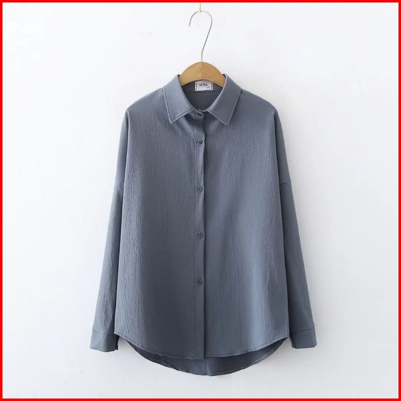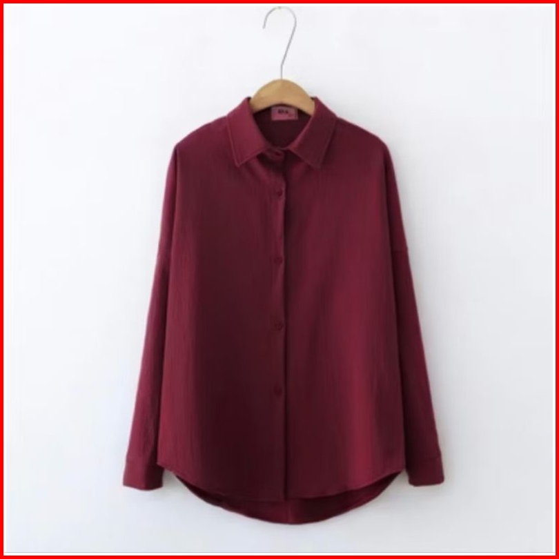 Kemeja Wanita Crinkle Airflow Atasan Wanita Lengan Panjang Kemeja Wanita Polos