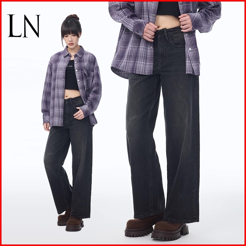 Ln.rltr Store-highwaist Oversize Baggy Loose Jeans Hitam Wanita