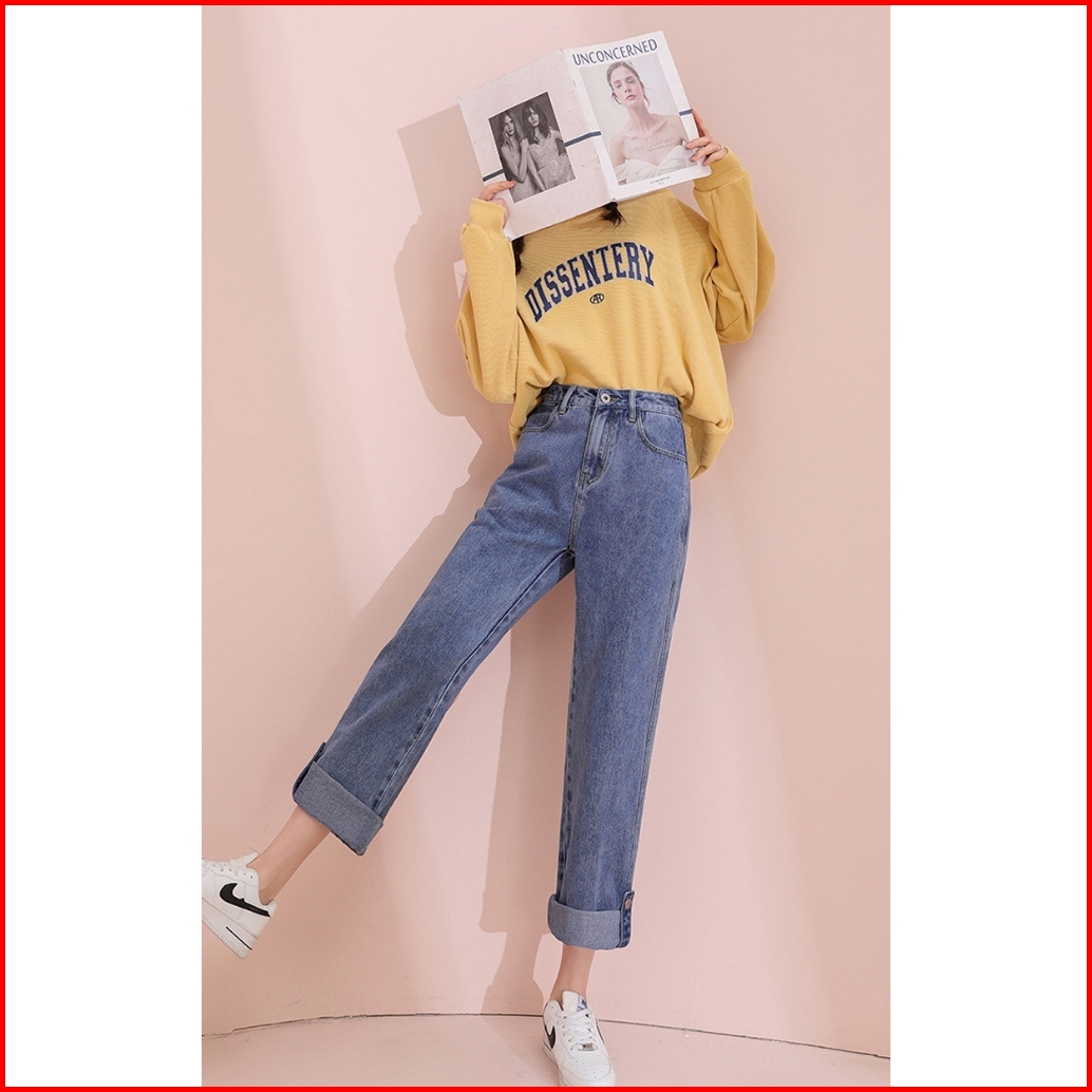 F Miga C15 Celana Panjang Highwaist Wanita Jeans Premium Quality Jeans Wanita Polos Jeans - Celana Roll-over Biru