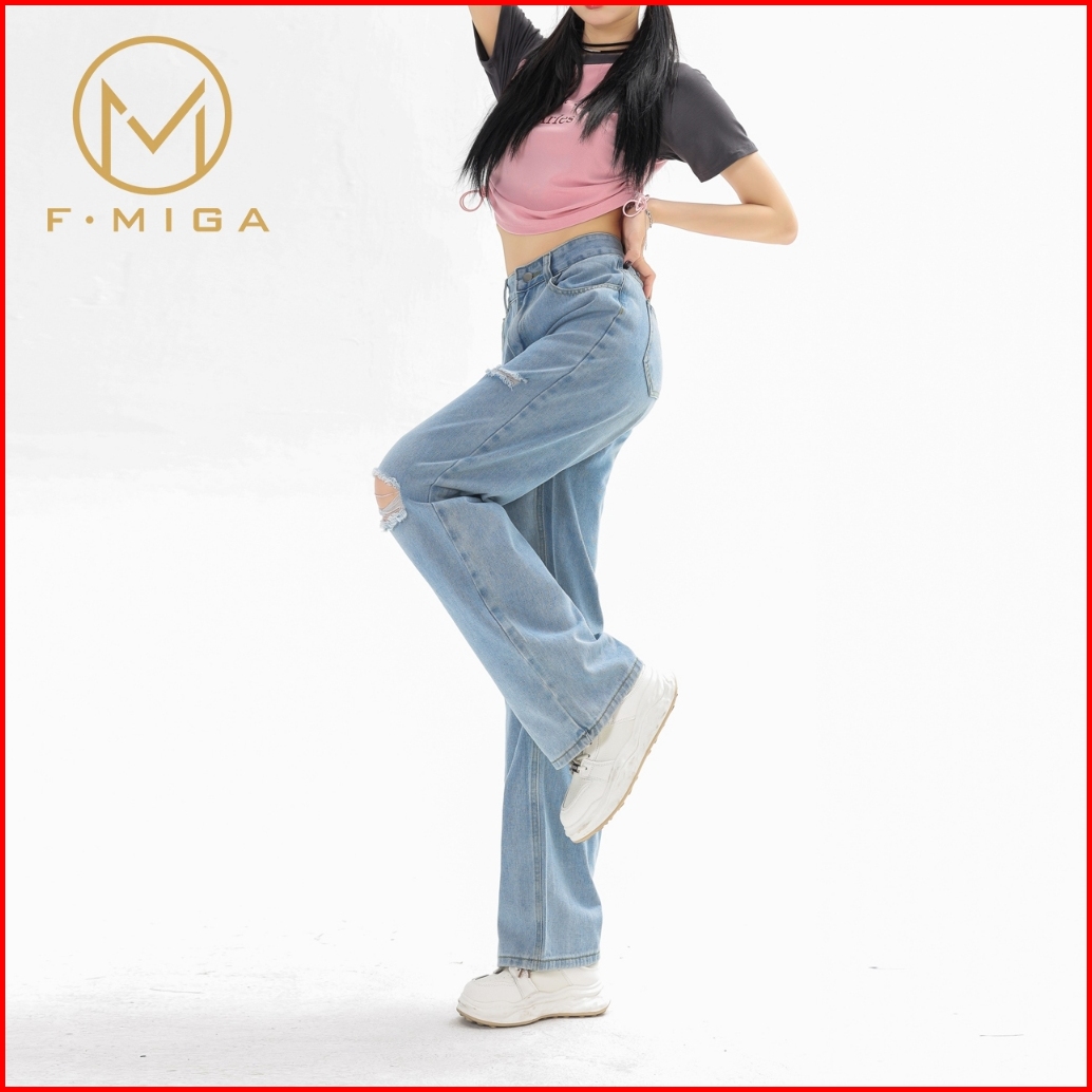 F Miga C49 Korean Style Ripped Jeans Wanita Highwaist - Light Blue