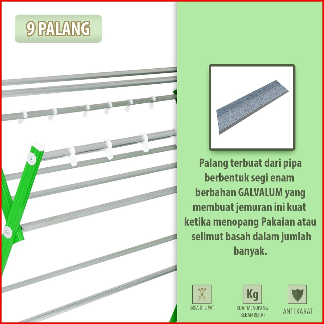 Kb Jemuran Pakaian Baju Rak Handuk Jemuran Besar Aluminium Galvalum Kokoh 9 Palang