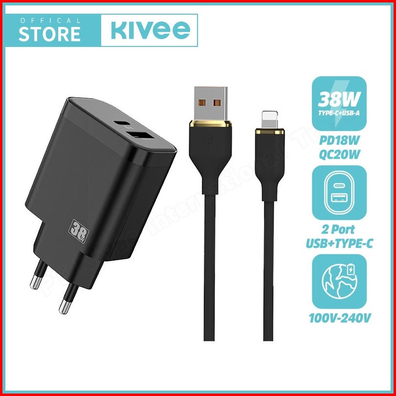 Kivee Charger Iphone Fast Charging 38w And Kabel Data Type C Lightning Micro Usb Set Quick 4.0