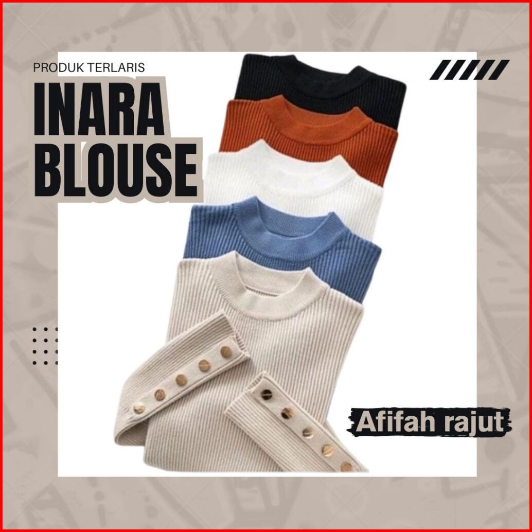 Inara Blouse Korea Manset Lengan Kancing Atasan Rajut Wanita Primula Blouse Korean Style Inner Rajut Lengan Panjang Inne