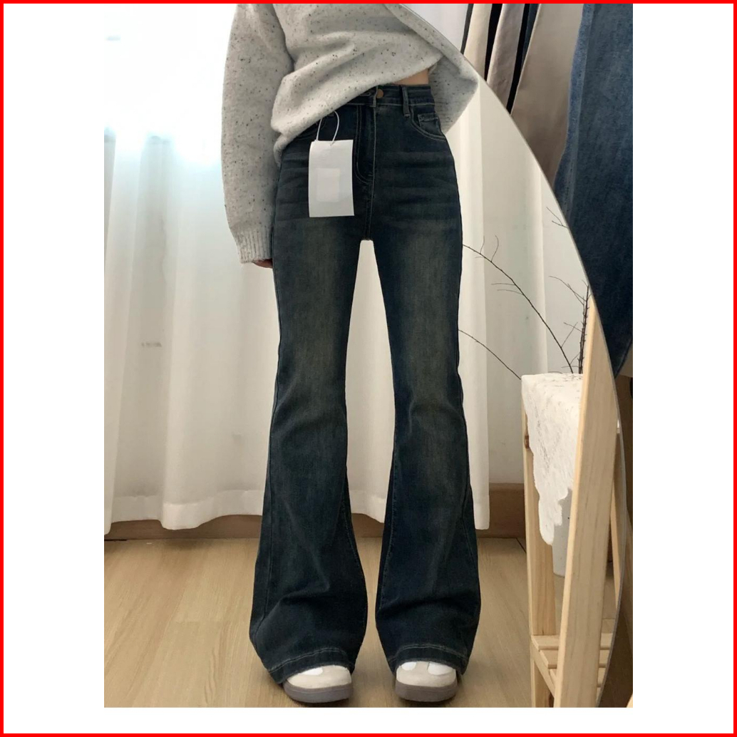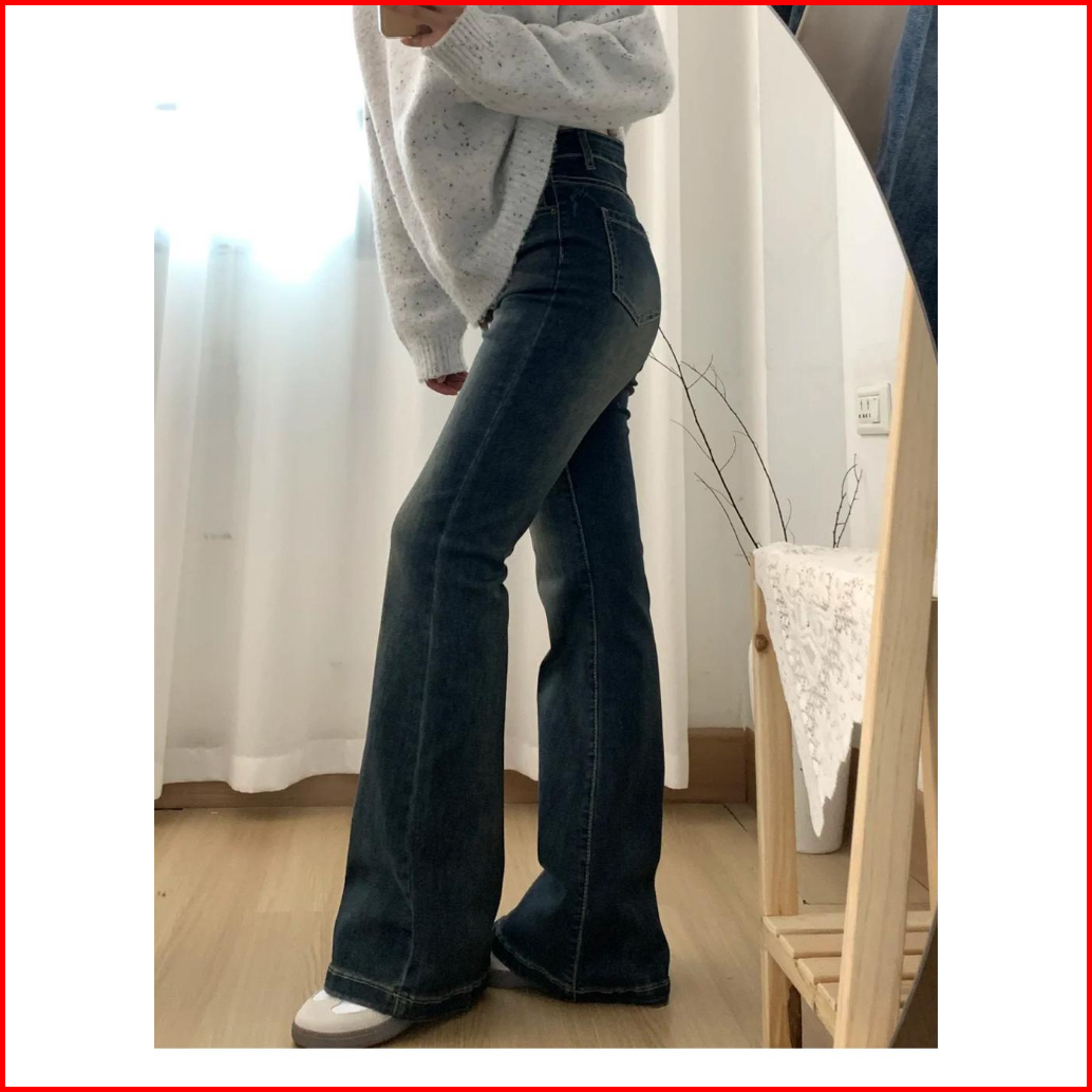 2toyoung Jeans Bootcut Robek Biru Vintage 2025 Baru Celana Jeans Wanita Celana Panjang Wanita Jeans High Waist Wanita