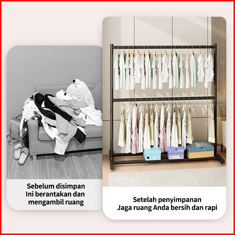 Rak Gantungan Baju Berdiri 200x150 Cm Stand Hanger 2 Susun Jemuran Pakaian Portable