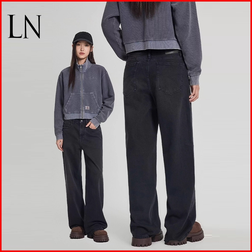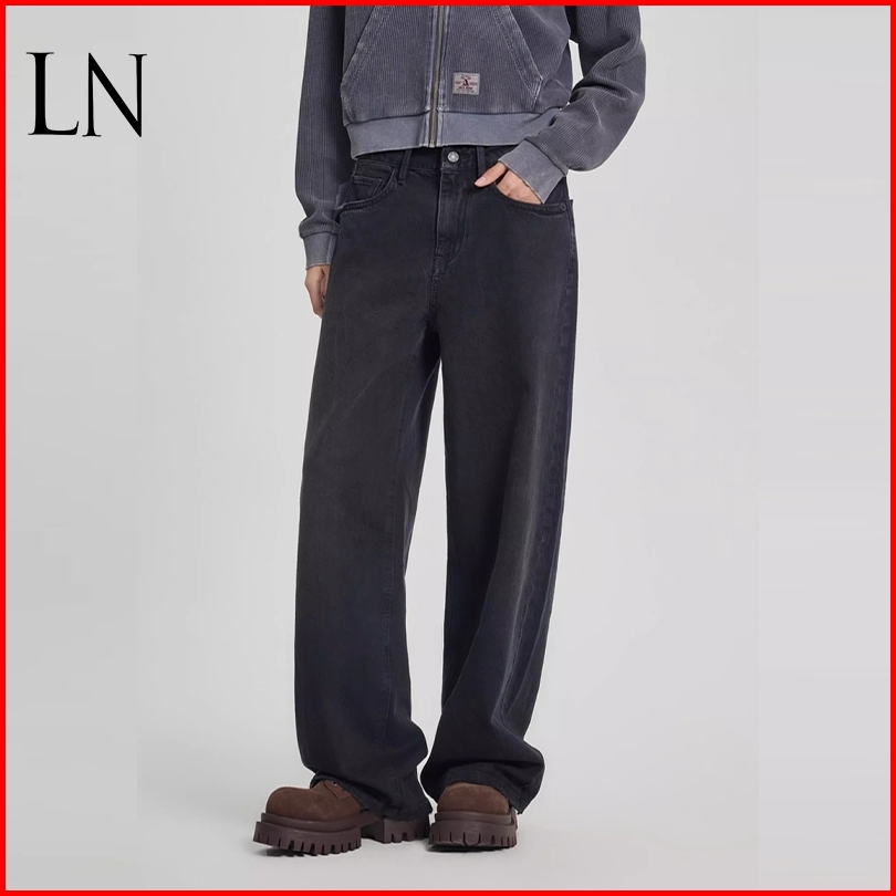 Ln.rltr Store-highwaist Loose Jeans Celana Hitam Wanita
