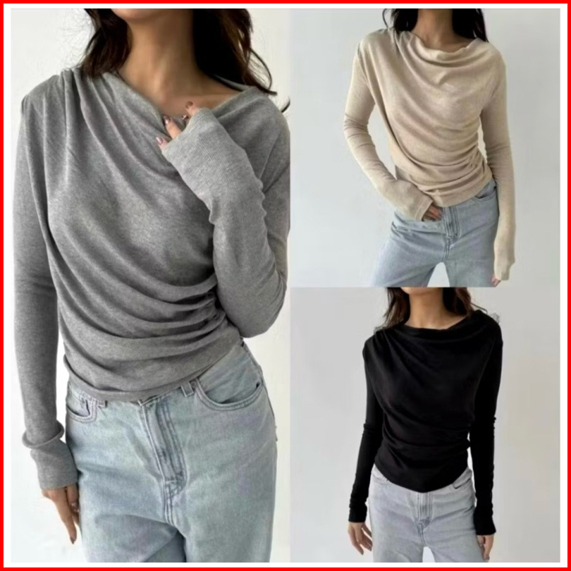 April Top Blouse Wanita Lengan Panjang Basic Premium April Top Premium Atasan Casual Basic Rib Wanita Lengan Panjang Apr