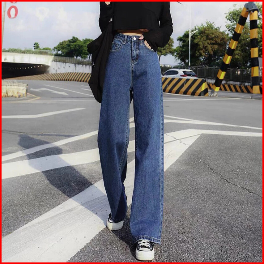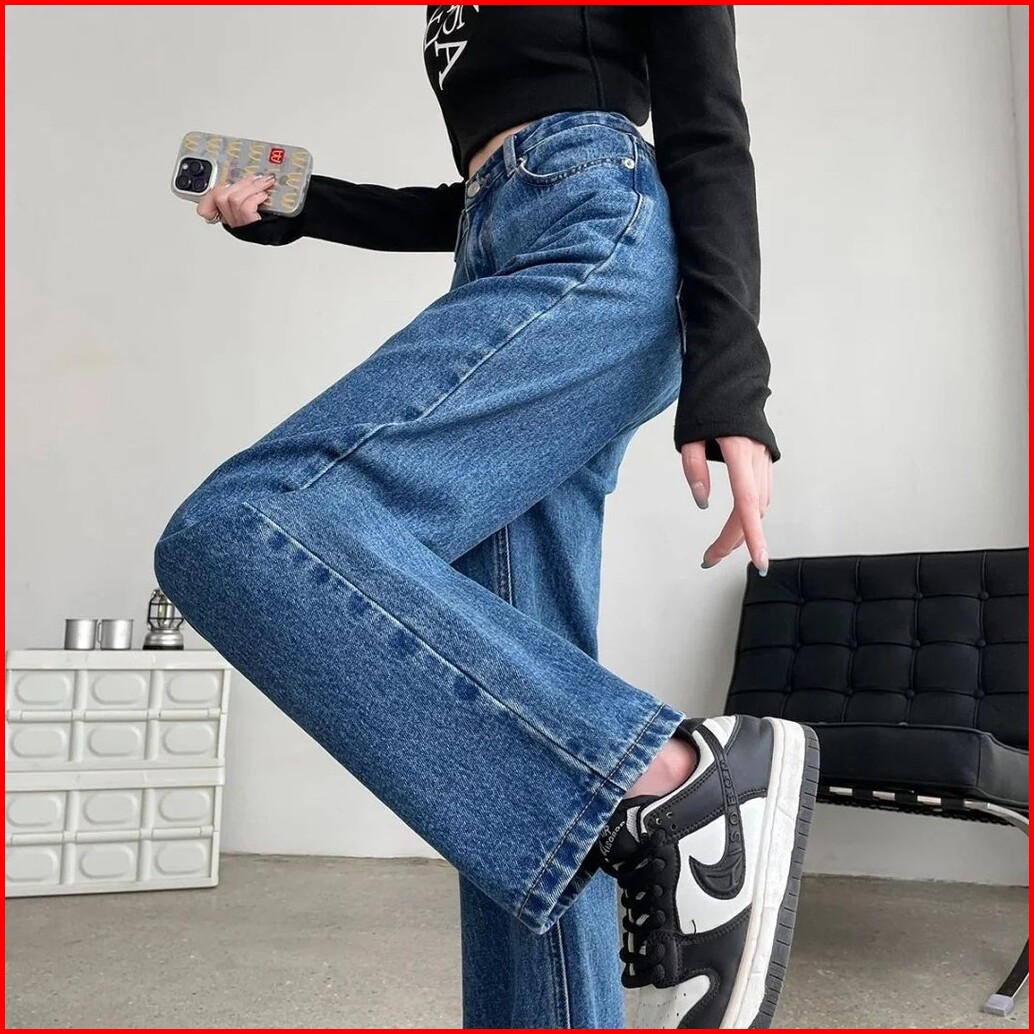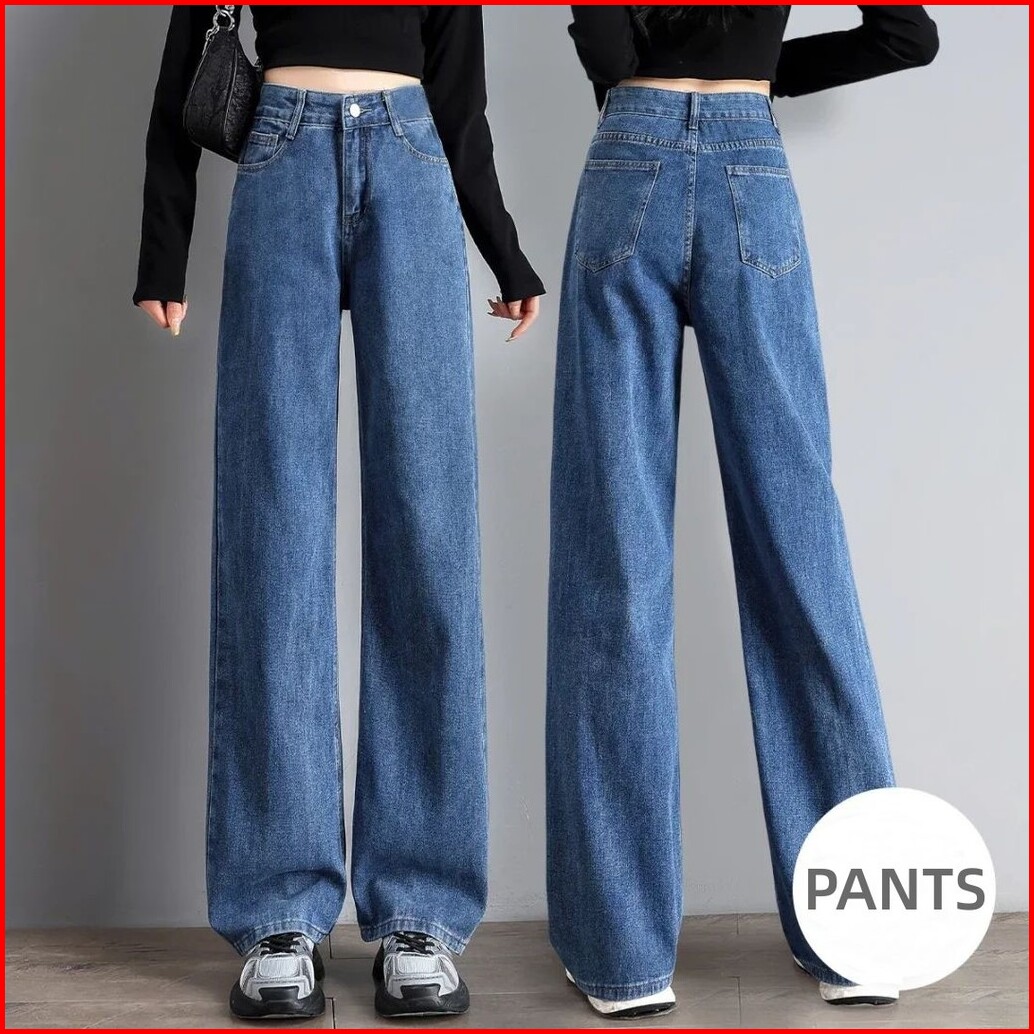 Yuruma Oversize S-5xl Celana Jeans Denim Ibu Pinggang Tinggi Kaki Lebar Untuk Wanita