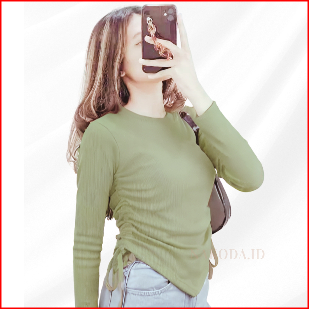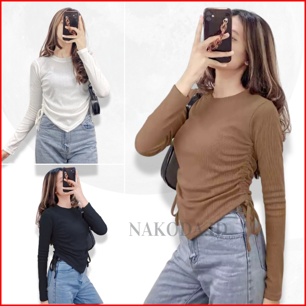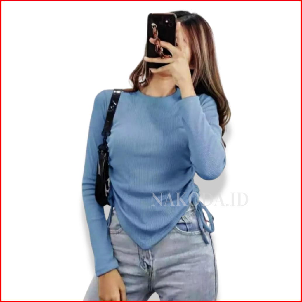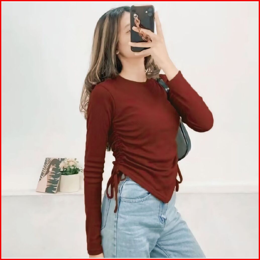 Valen Top Crop Blouse S M L Xl Atasan Wanita Knit Kaos Terbaru Blus Rib Polos Kekinian Viral