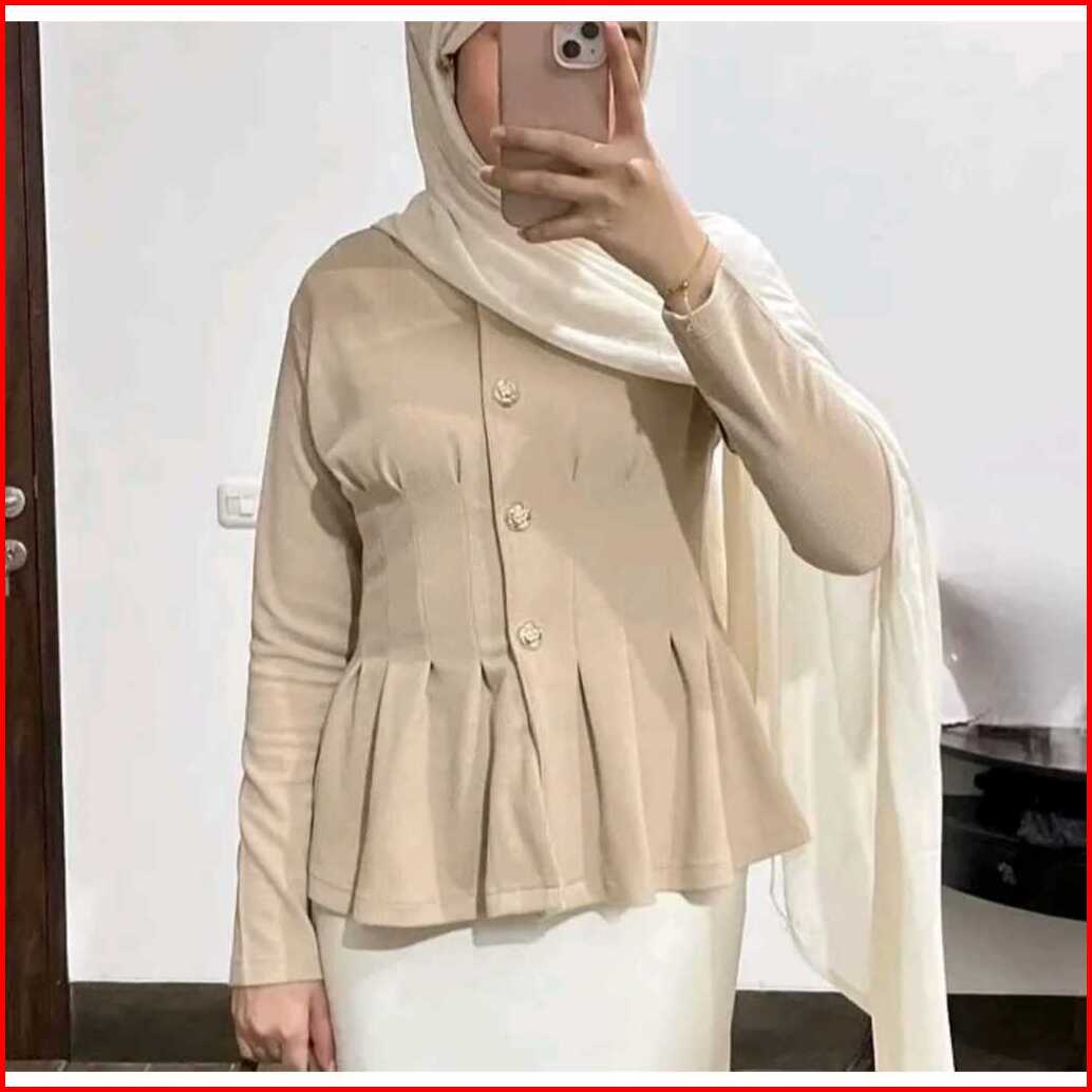 Bently Busana - Vana Blouse Peplum Fitbody Wanita Lengan Panjang Ld 95cm Dan 105cm Terbaru