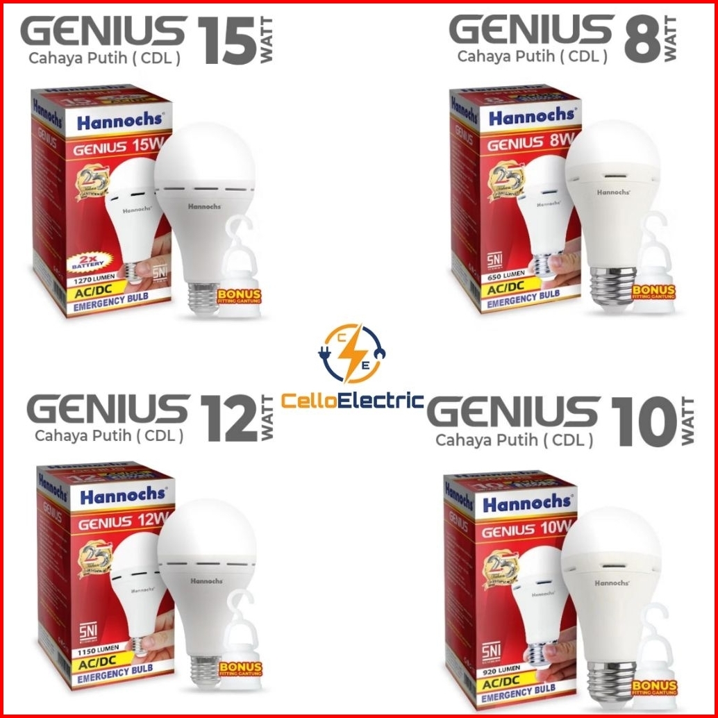 Lampu Emergency Hannochs Genius 6w 8w 10w 12w 15w - Led Hannochs Ac Dc Genius