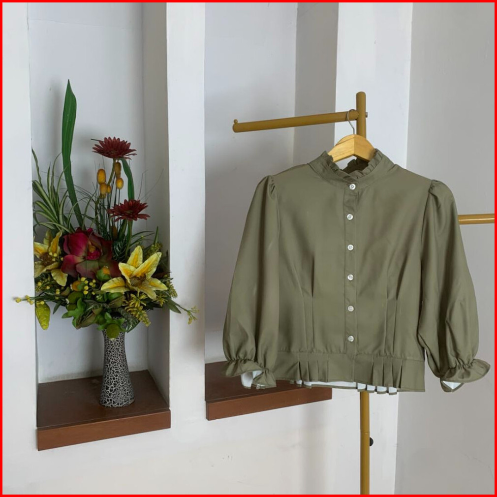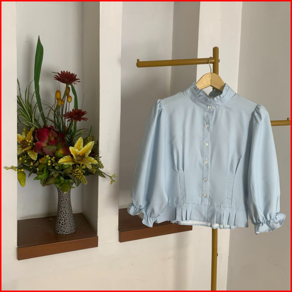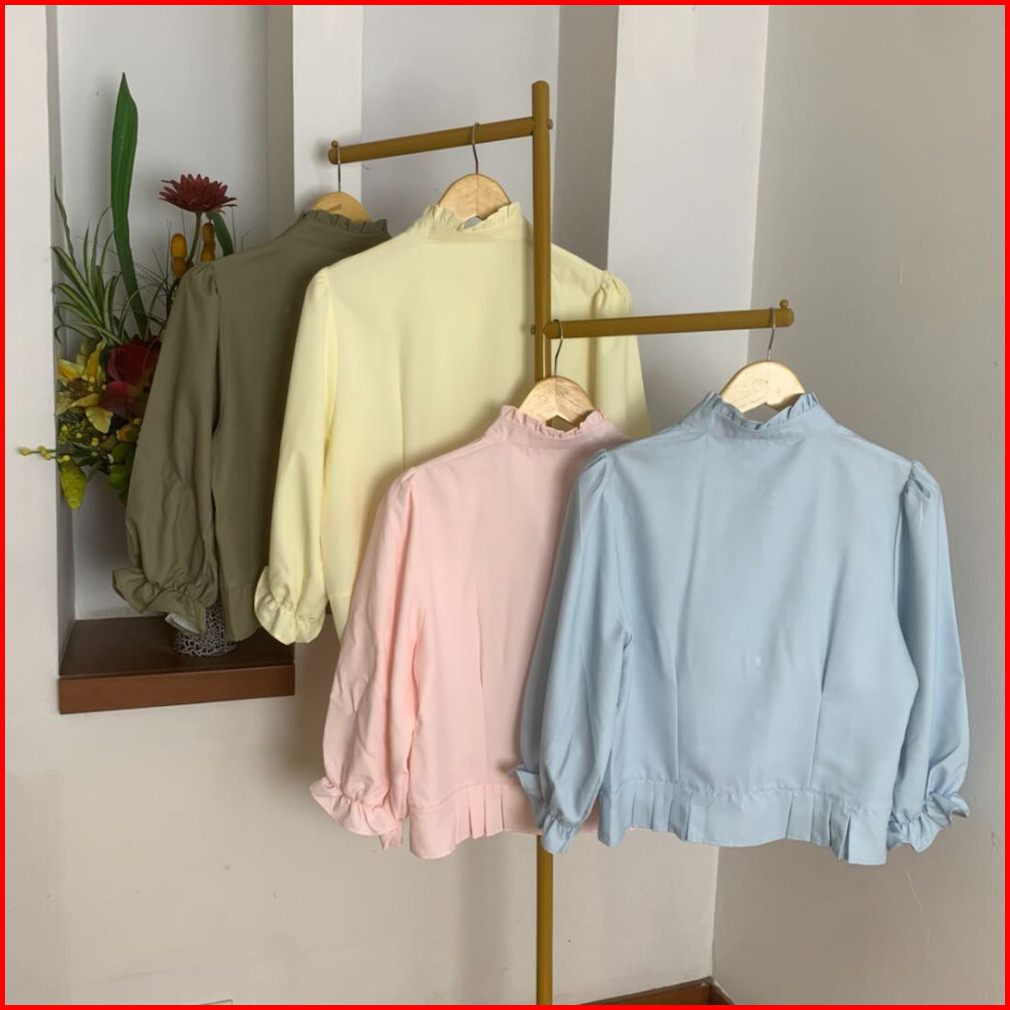 Atasan Wanita Blouse Dengan Kerah Rempel Dan Lengan Balon Baju Lengan Panjang Kasual Pakaian Wanita Modis Fashion Wanita