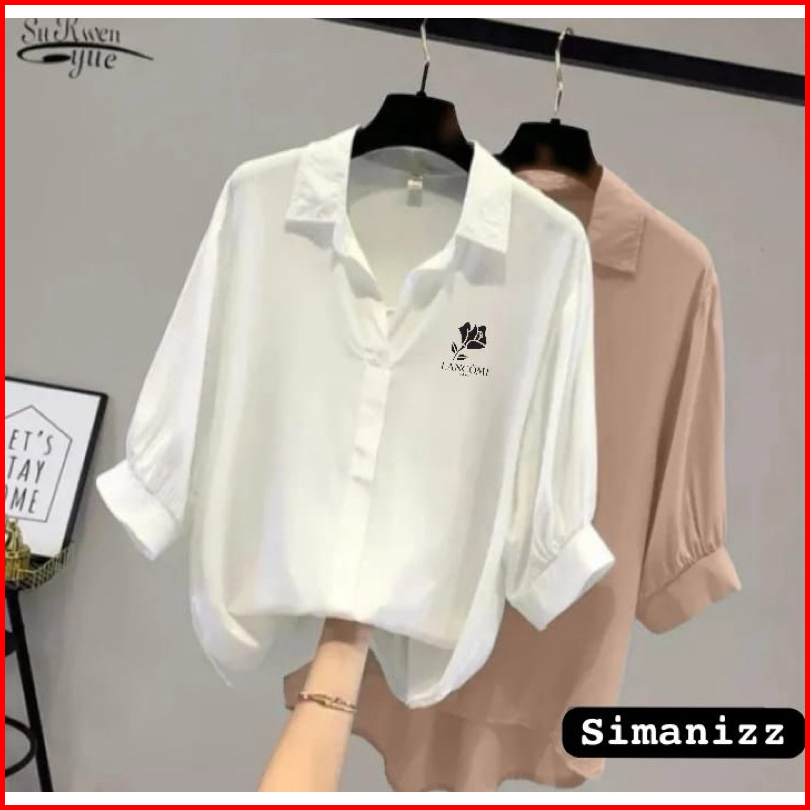 Blouse Wanita Logo Mawar Leher V Atasan Wanita Kemeja Blouse Ruffle Ballon Blus Wanita Casual Kerja Korean Style Pakaian