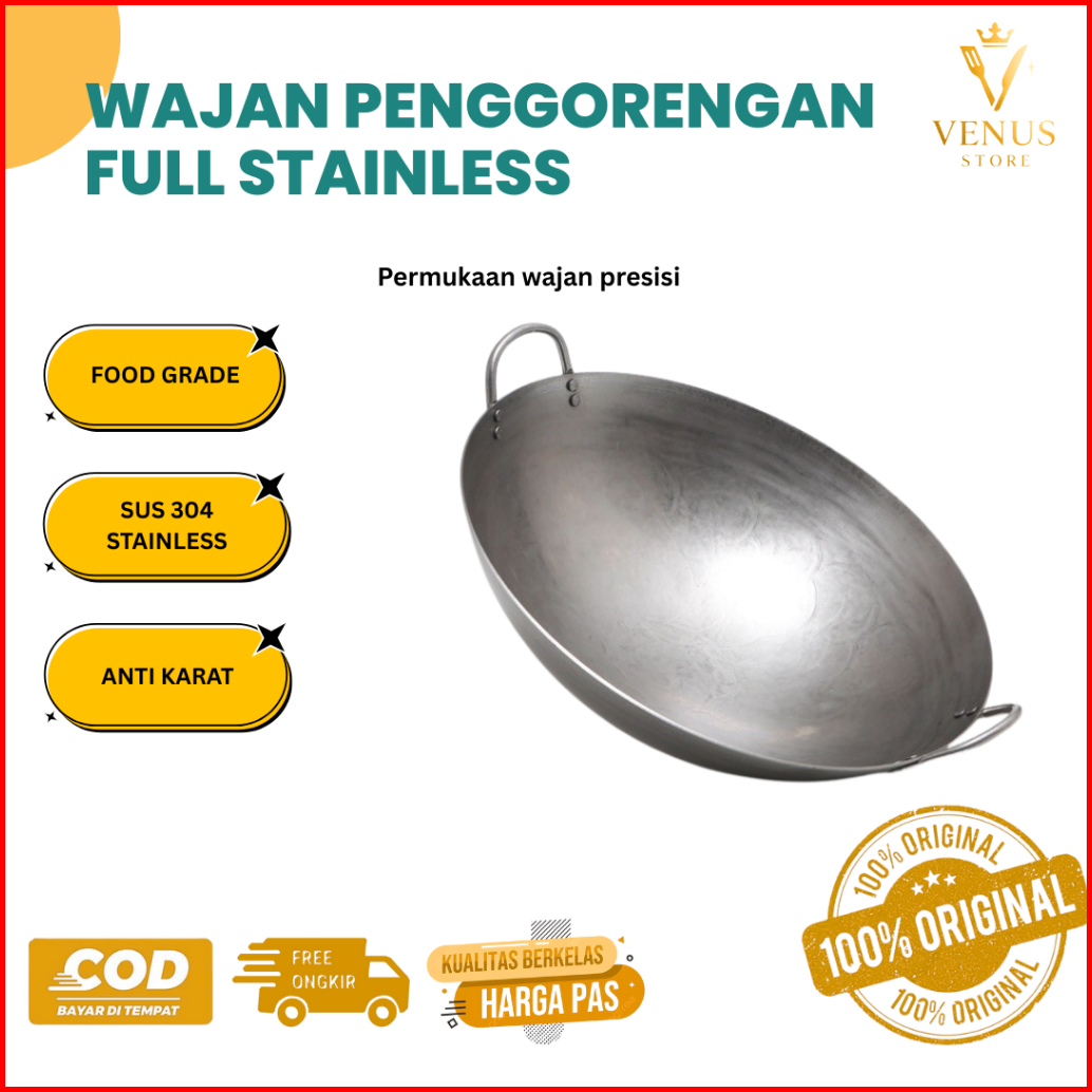Venus Store Wajan Penggorengan Tebal Full Stainless Steel Ukuran 30cm - 60cm Sus 304