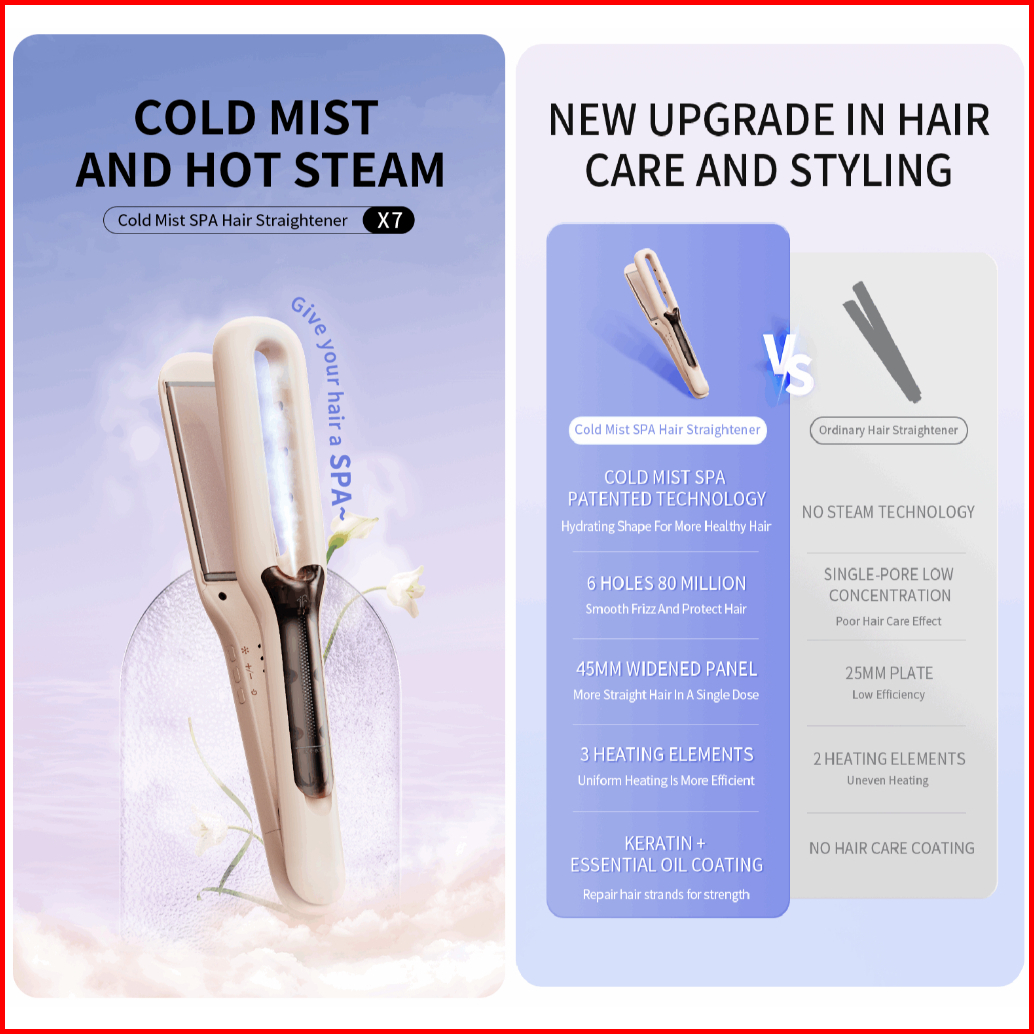 Livchic X7 2in1 Catokan Rambut Cold Mist Spa Hair Straightene 60w Daya 2 Meter 360