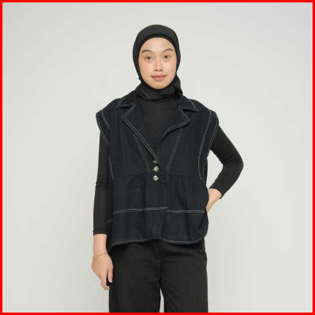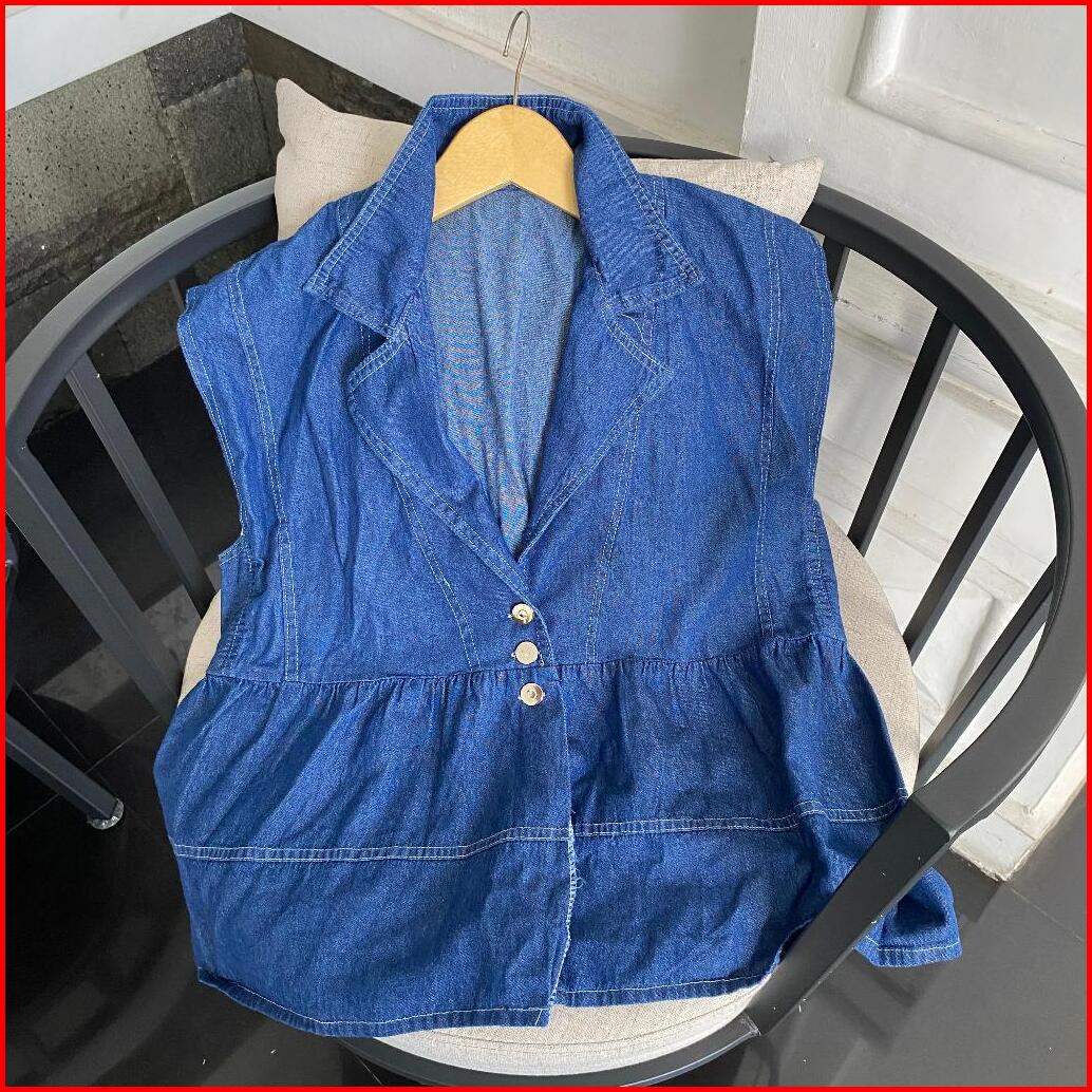 Jacket Rompi Oversize Jeans Denim Rompi Wanita Vest Jeans Wanita Vintage Korean Style Kekinian Geo Vest