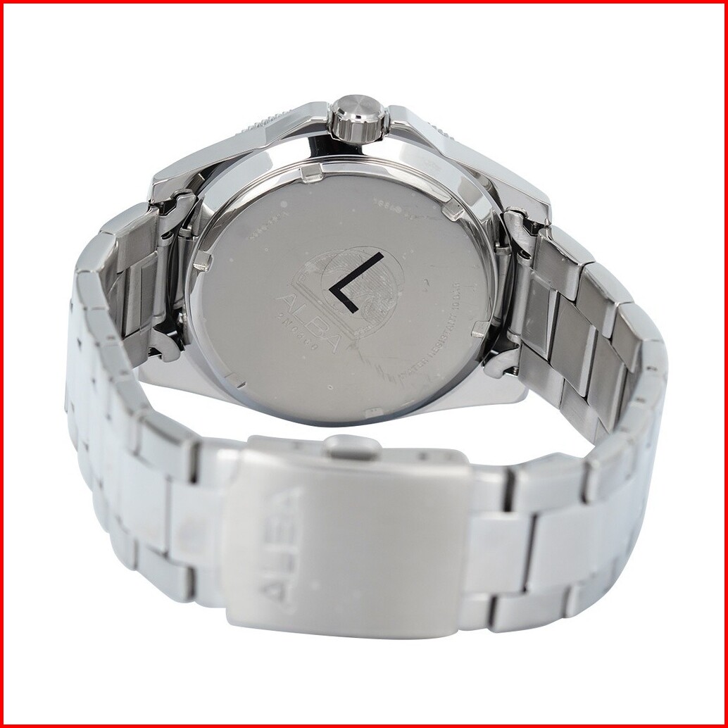 Jam Tangan Pria Alba Ag8l87x1 Silver Green Sunburst Dial Stainless Steel Strap