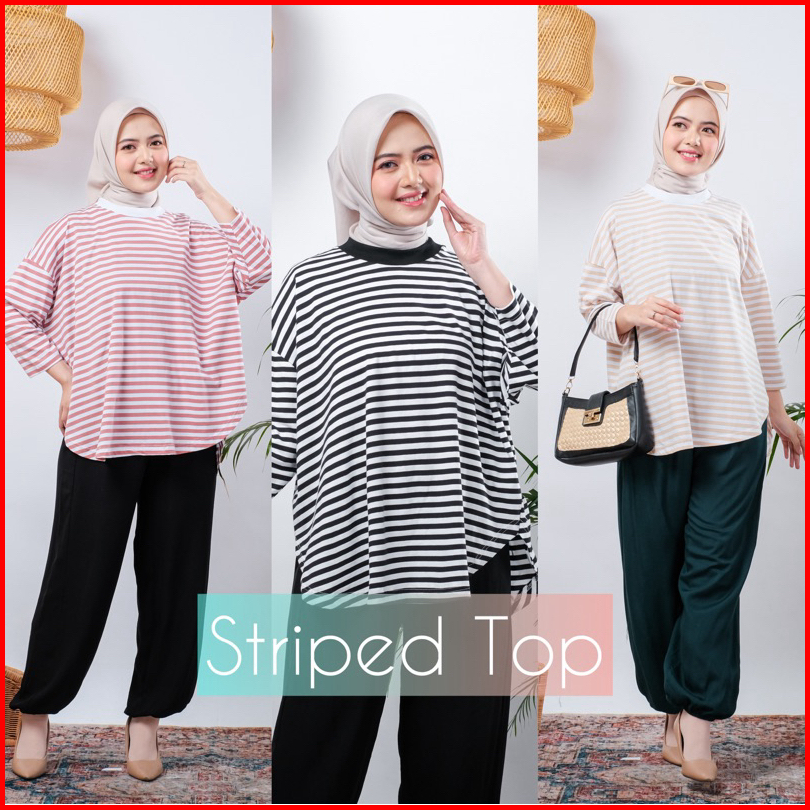 Ncdy Striped Top Atasan Wanita Lengan Panjang Salur Belang Bahan Cotton