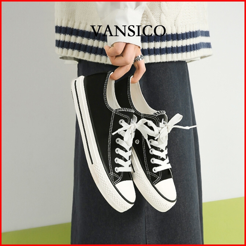 Vansico Sepatu Sneakers Canvas Wanita Original 100 Santai Casual Shoes Kets Kanvas Cewek Putih Hitam Premium Kekinian Vs
