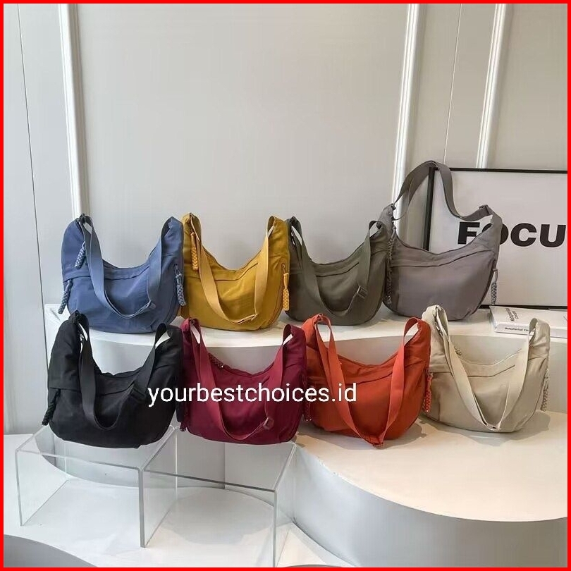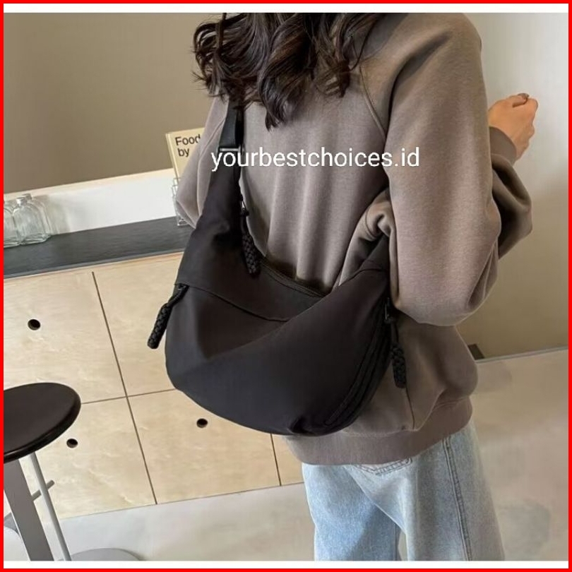 Premium Sling Bag Large Crossboarder Shoulder Bag Korean Style Round Tas Selempang Nylon Tas Wanita Import Polos Besar