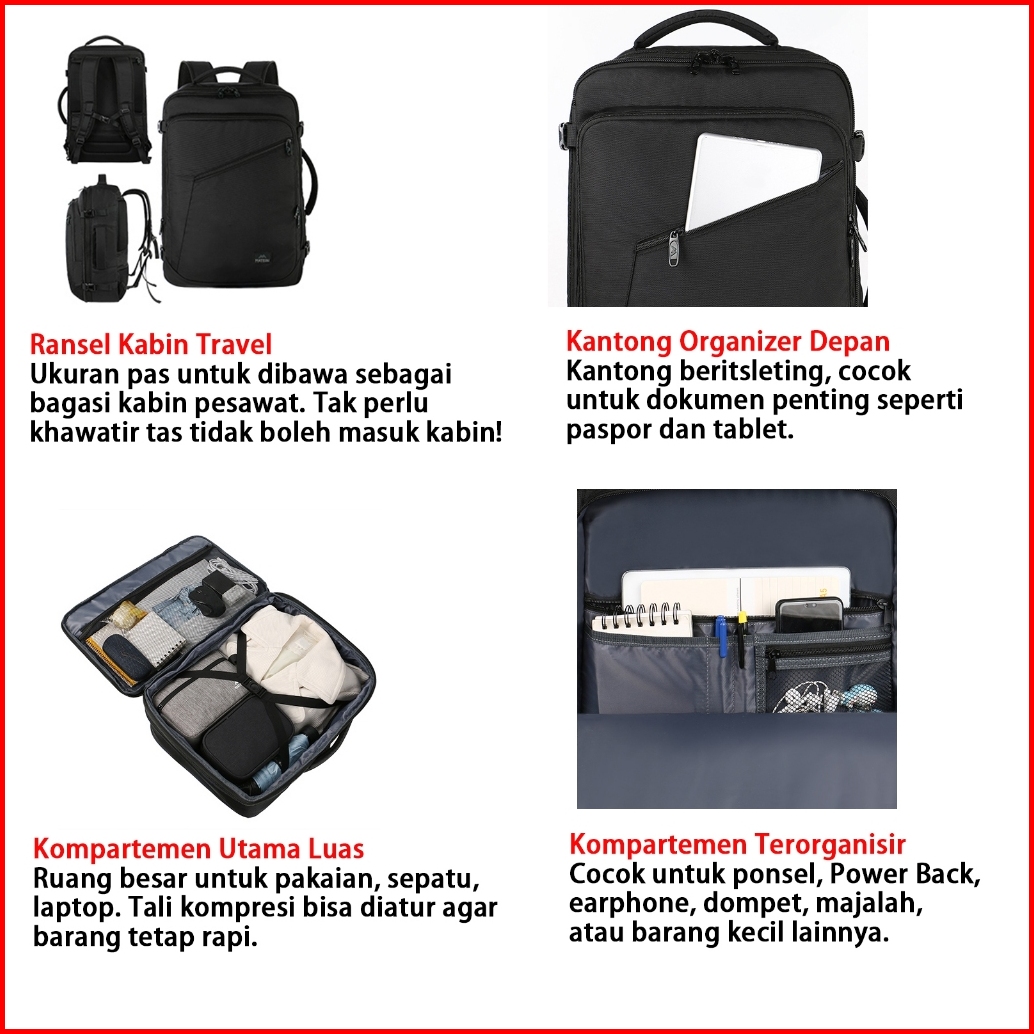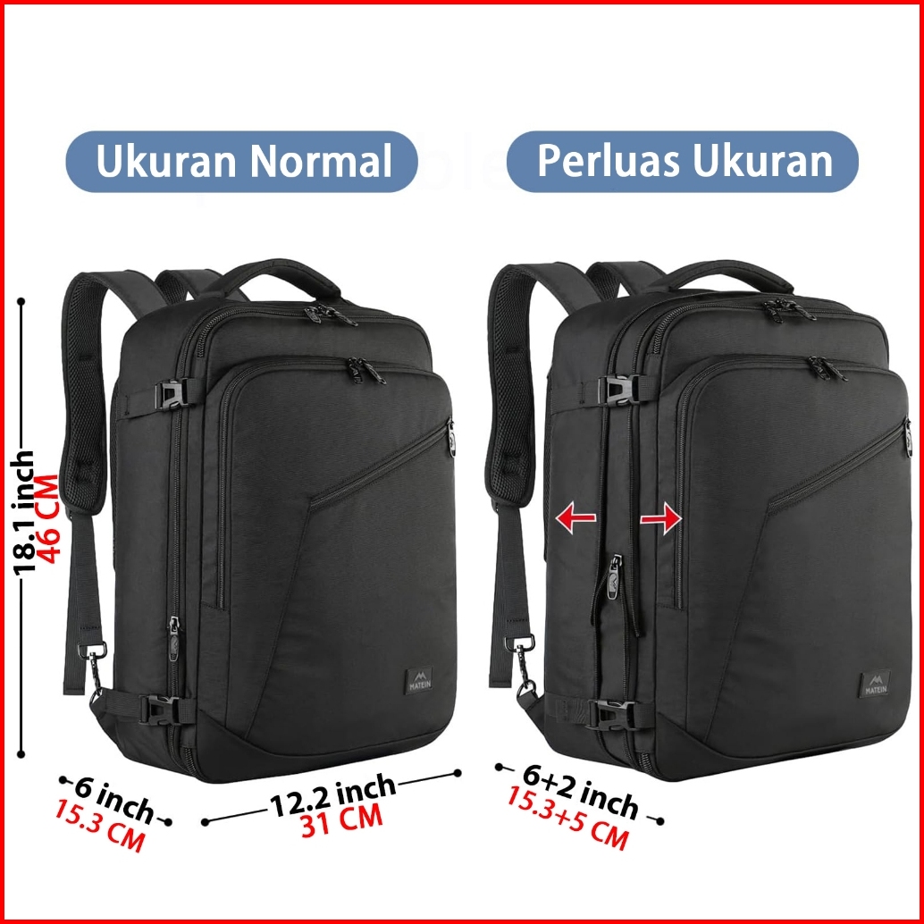 Matein Tas Ransel Traveling Multifungsi Backpack Pakaian Kabin Baju Anti Air Besar Diperluas
