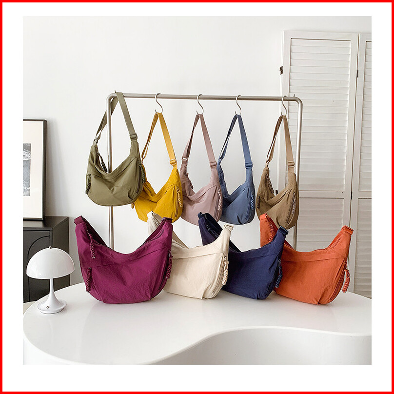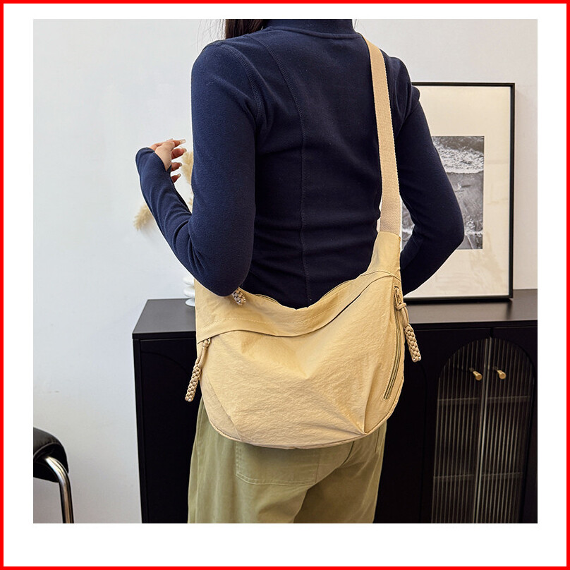 2025 Tas Selempang Nylon Uniseks Kapasitas Besar Multi Kompartemen Desain Minimalis Ala Jepang Ringan Warna Solid Bentuk
