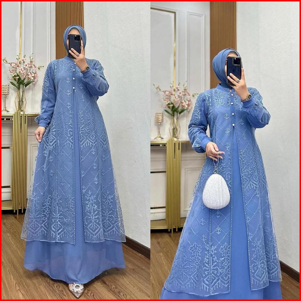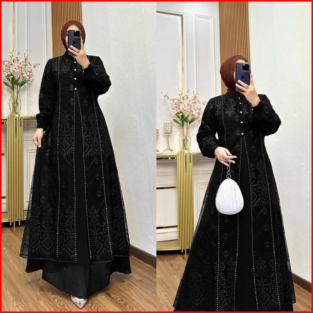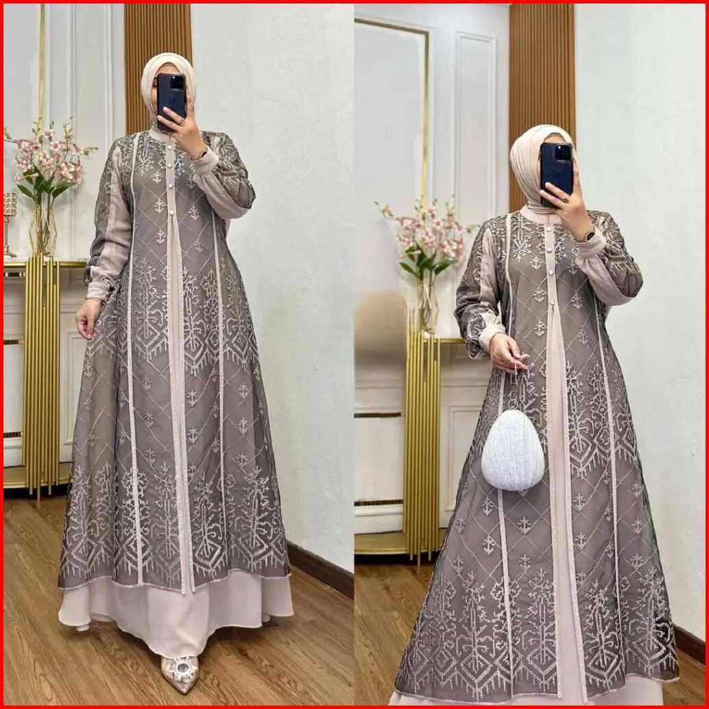 Dress Mahogany Denara Bahan Ceruty Armany Mix Brukat Aplikasi Swarovski Baju Pesta Mewah Viral 2025