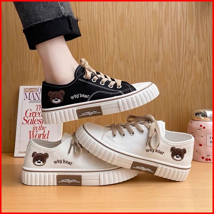 Sepatu Wanita Sneakers Kanvas Teddy Bear Lucu 01