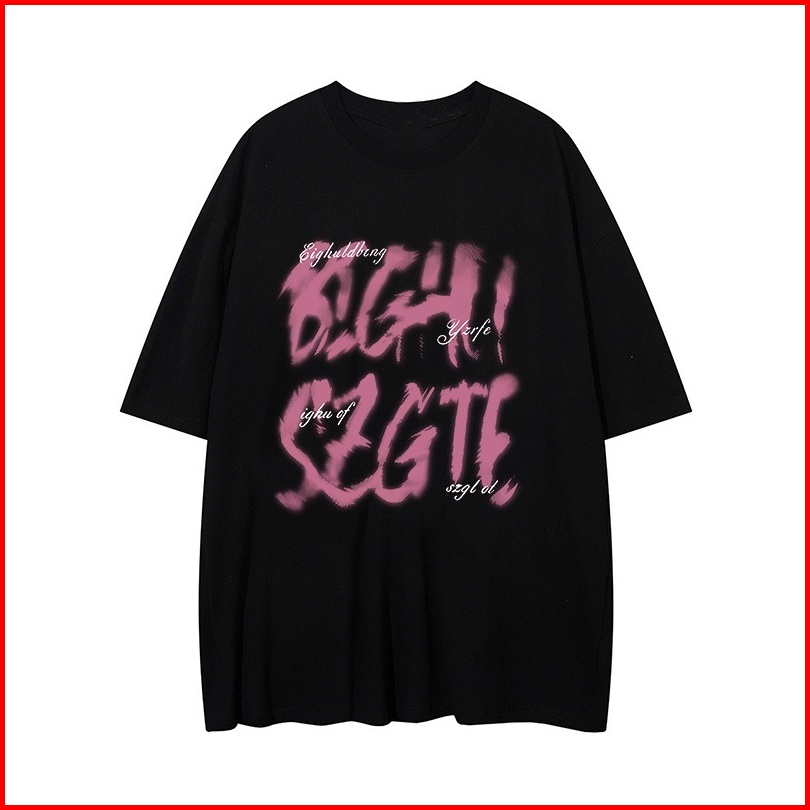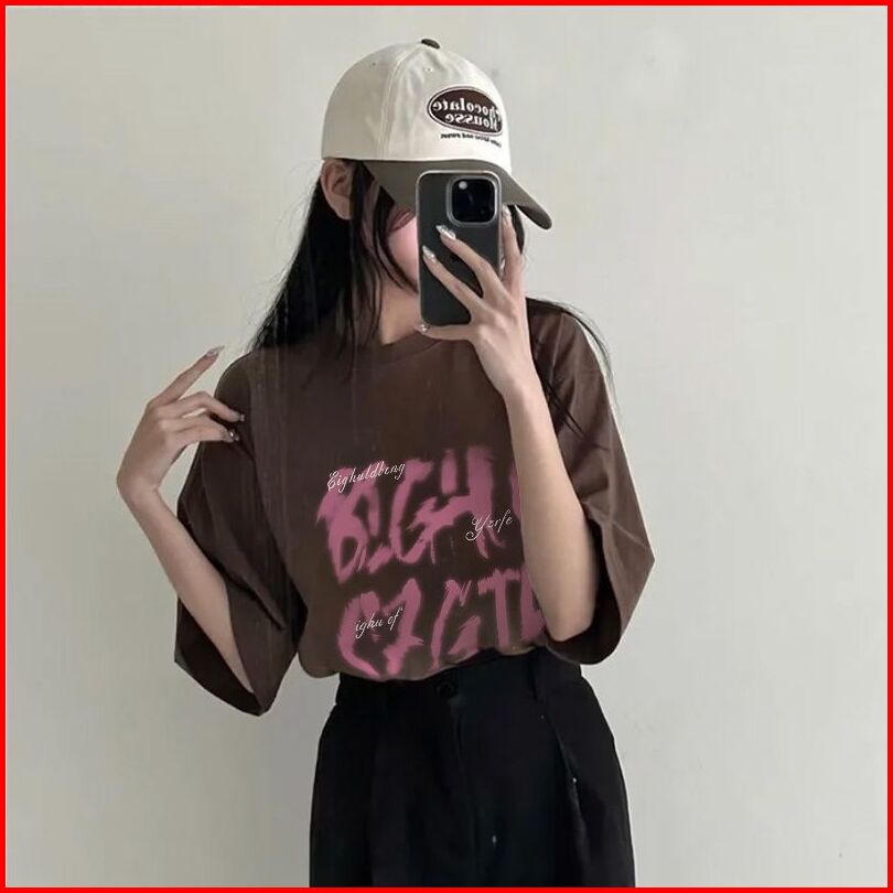 Riod Aoer American Style Korean Style Huruf Merah Muda T Shirt Kaos Tshirt Oversize Wanita Baju Bigsize Lengan Pendek Re