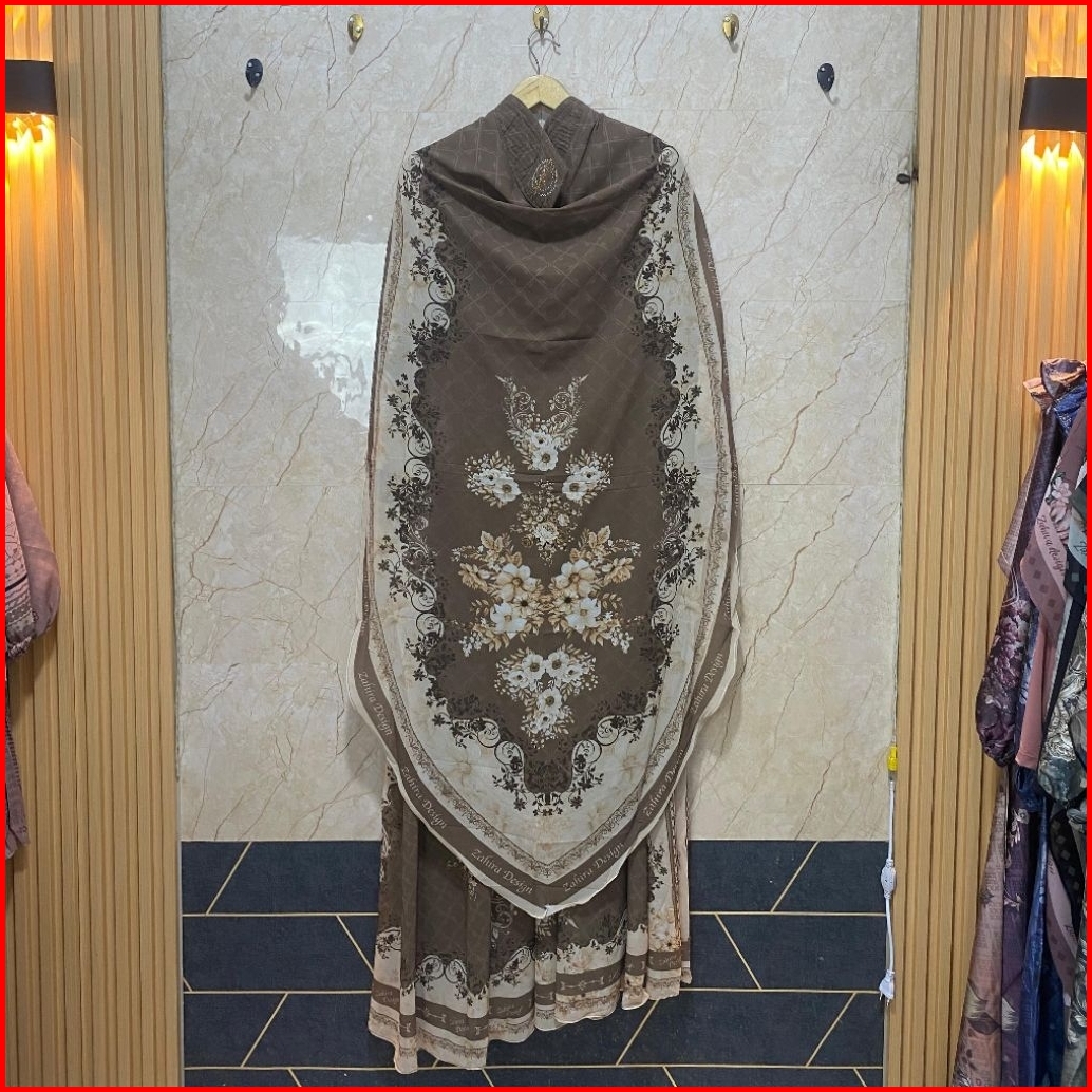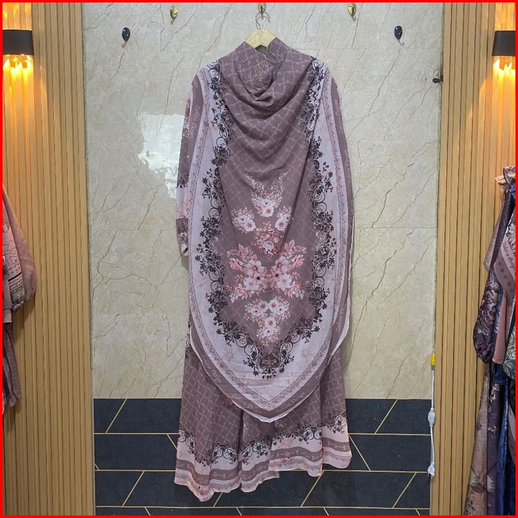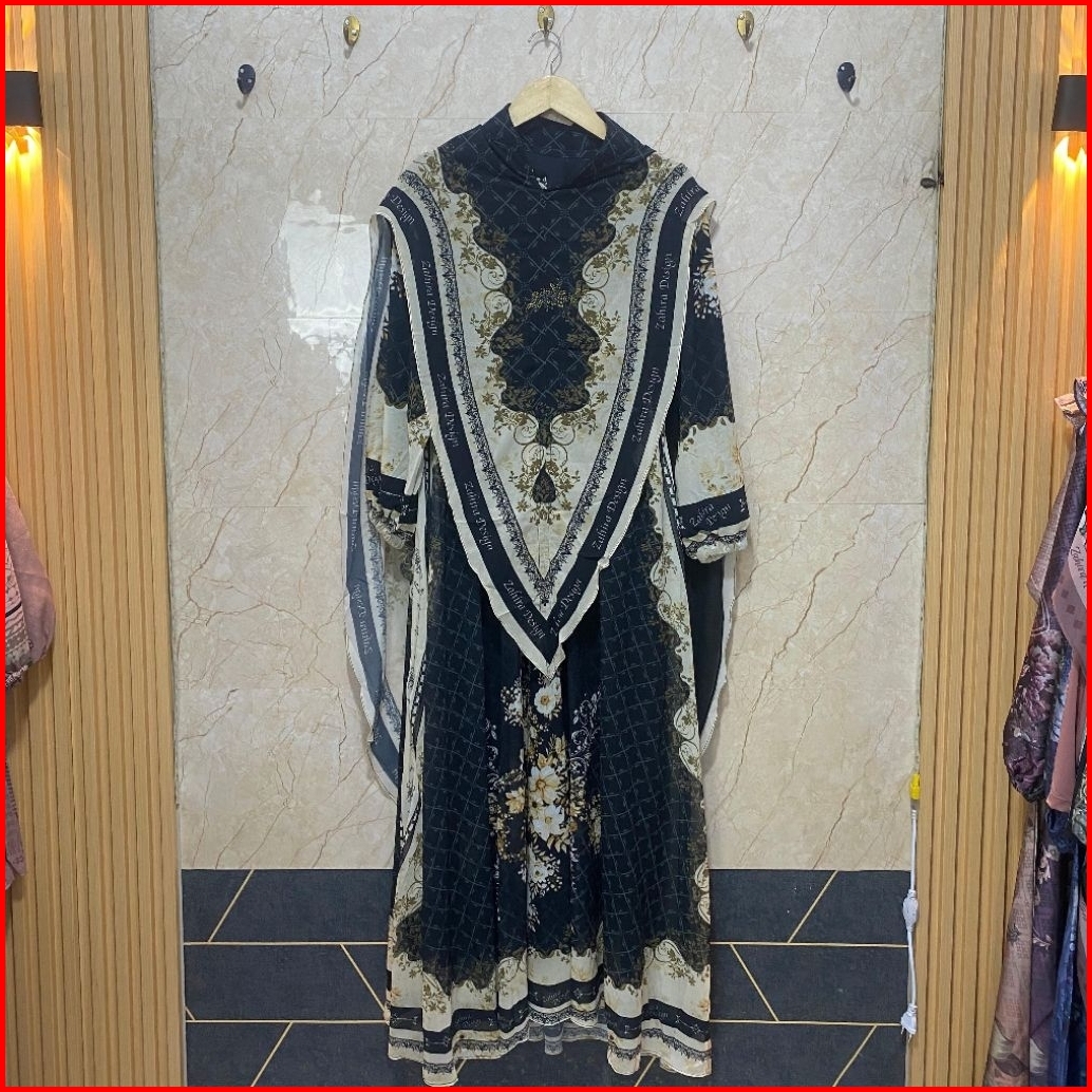 702 Gamis Dress Muslim Syari Set Khimar Oval Panjang Ujung Lancip Dengan Motif Digital Printing Berbahan Full Ceruty Bab
