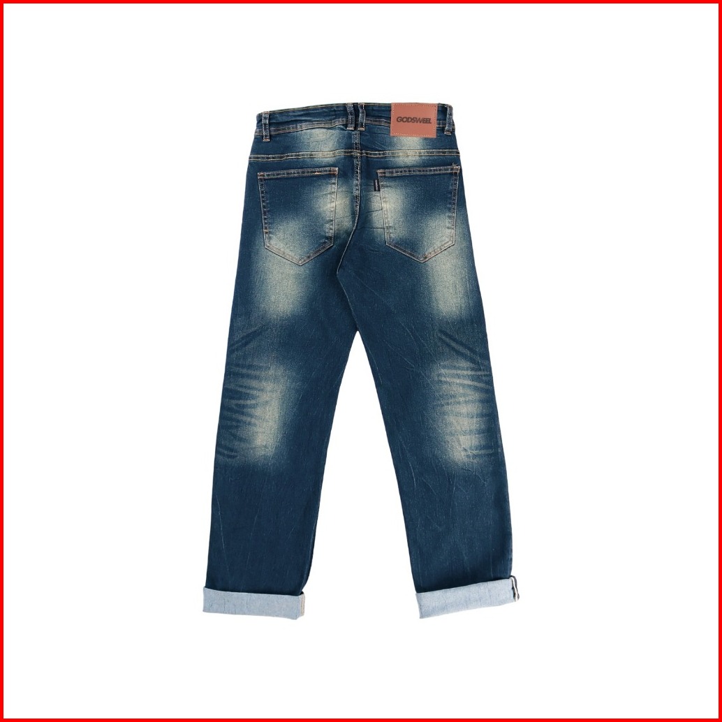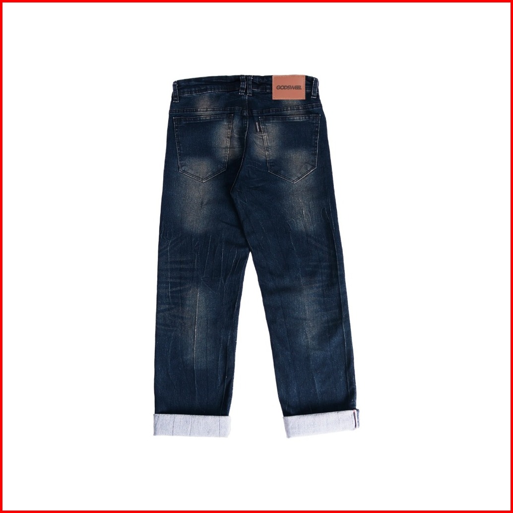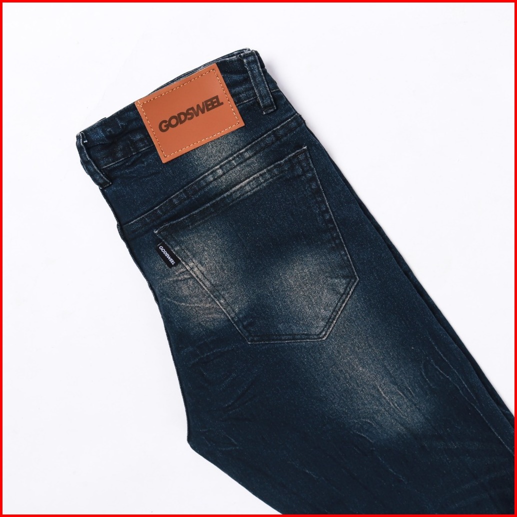 Godsweel Celana Jeans Reguler Pria Standar Panjang Stretch Meral Aksen Selvedge Biotink