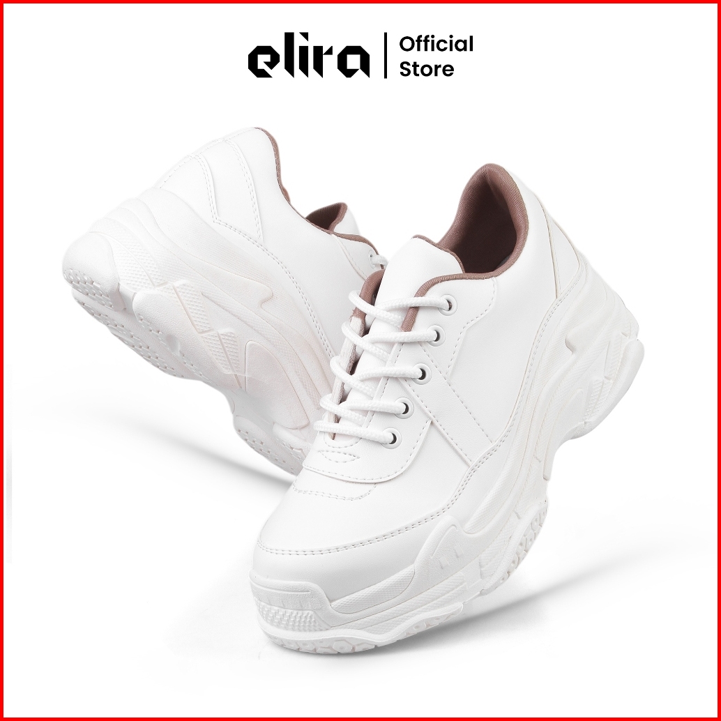 Elira Sepatu Chunky Sneakers Wanita Dustin White Cream Black Platform Shoes Women