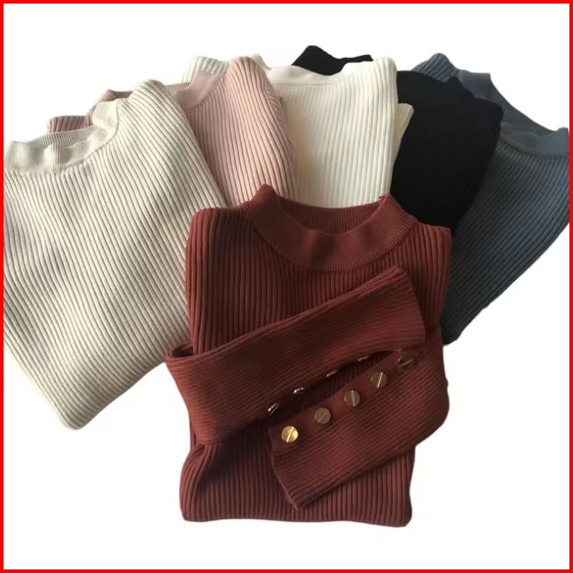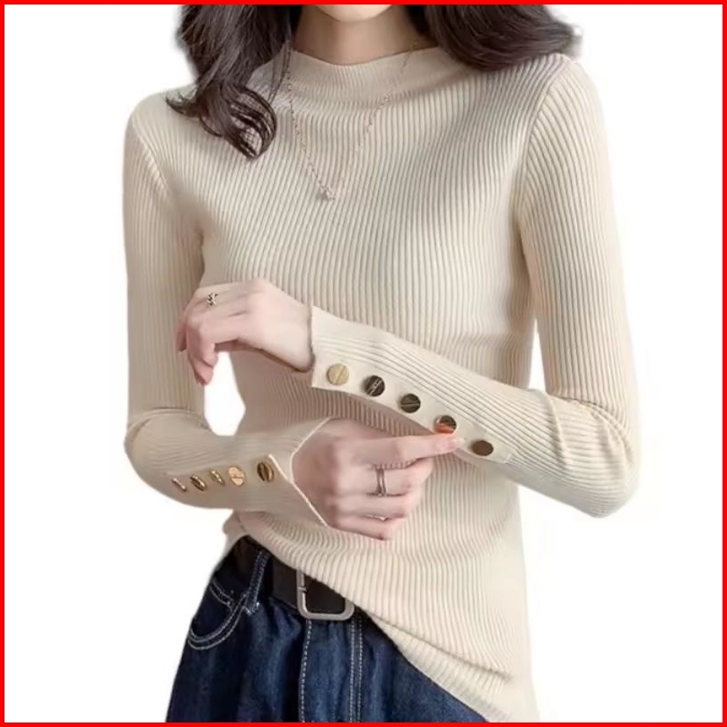 Goodboyy Store Baju Rajut Inner Manset Wanita Inara Motif Kancing Turtleneck Korea Style
