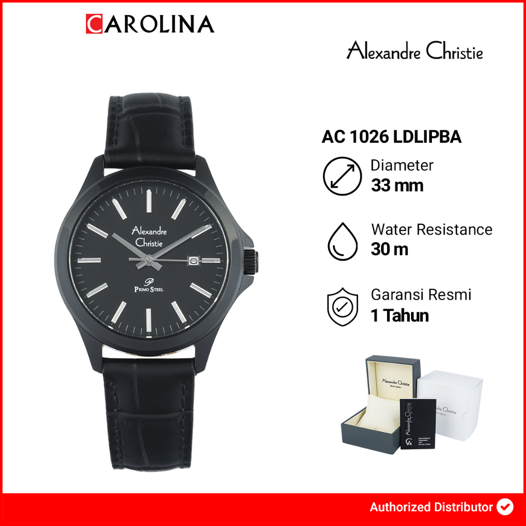 Jam Tangan Wanita Alexandre Christie Primo Steel Ac 1026 Ldlipba Black Dial Black Leather Strap
