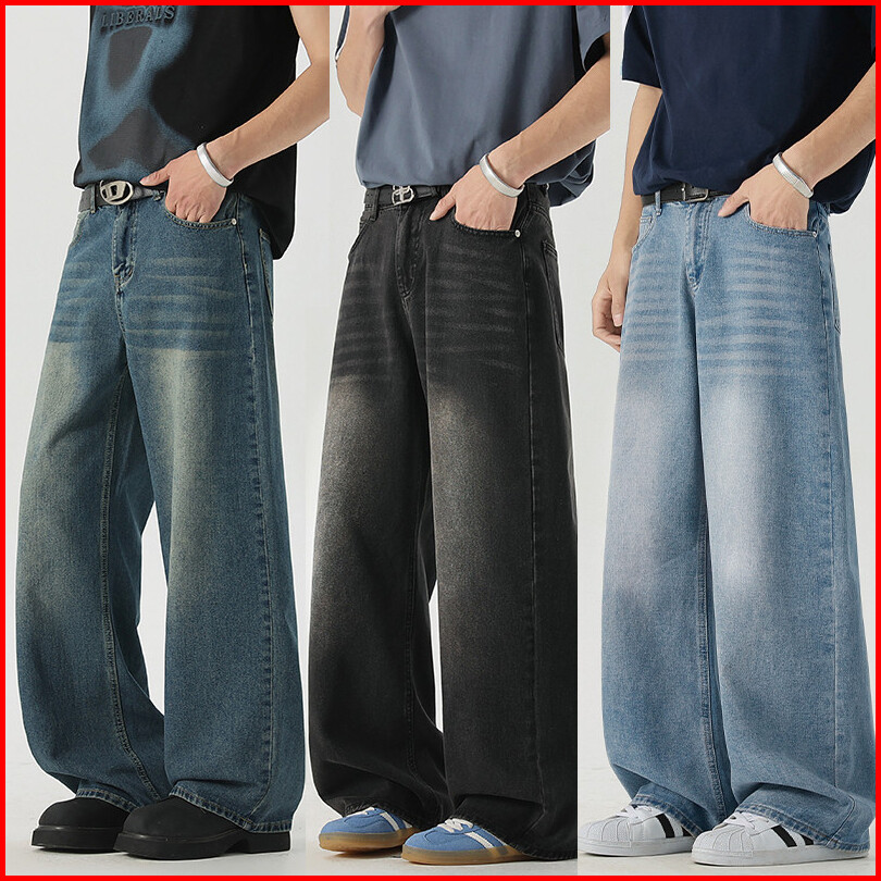 Celana Jeans Pria Retro Biru Korean Style Panjang Baggy Pants Gombrong Casual Premium Denim Dewasa Cowok Jins