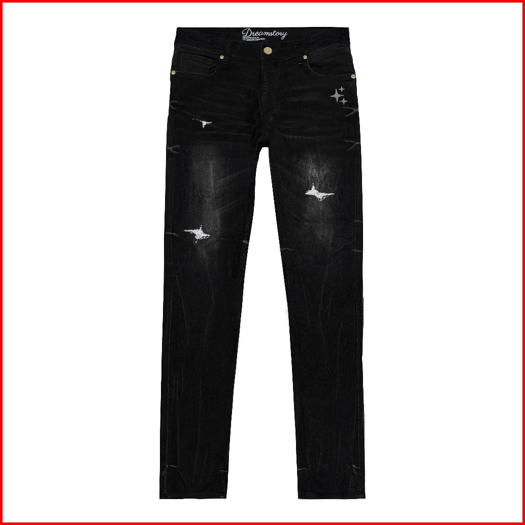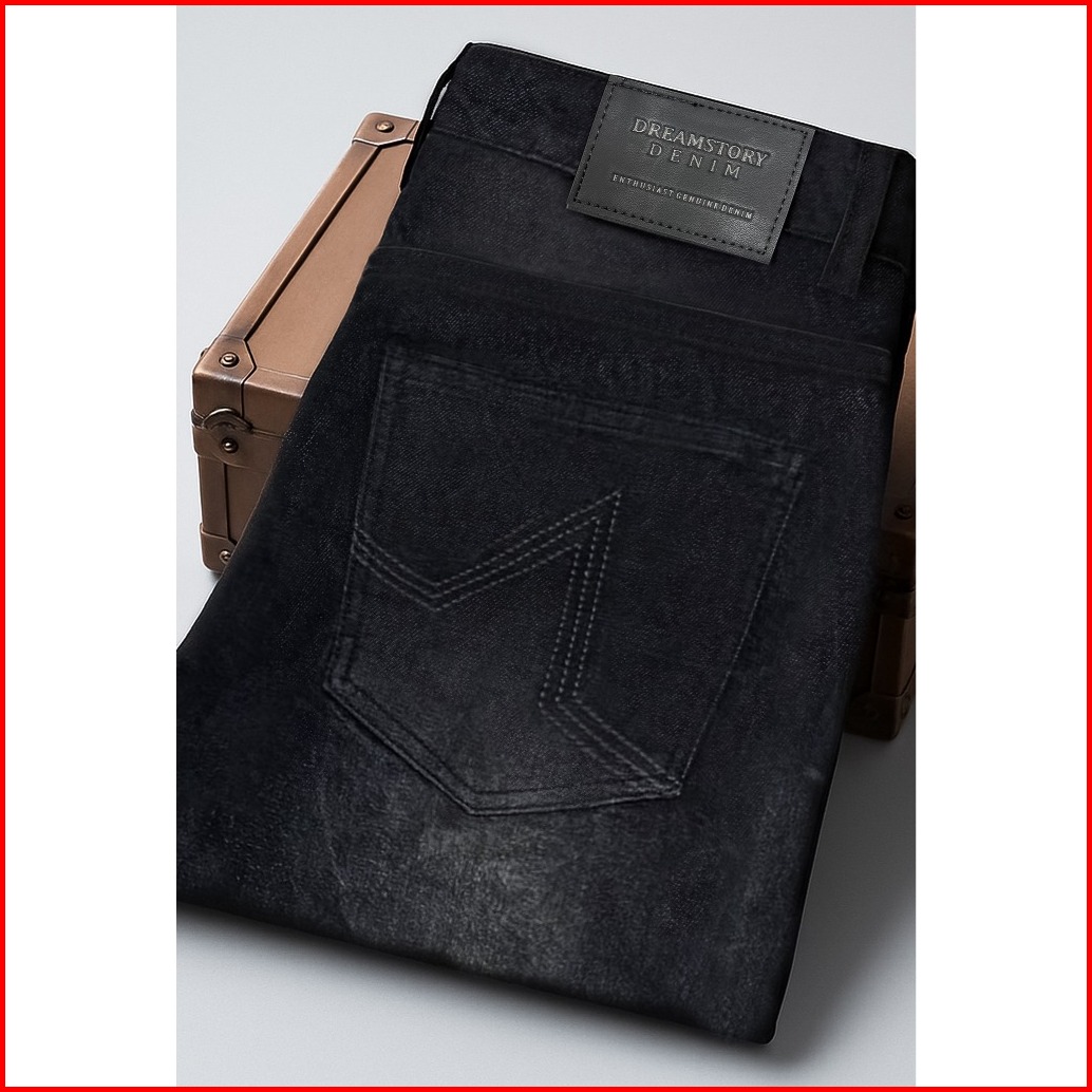 Dream Story - Celana Panjang Jeans Slimfit Skinnyfit Back To Star Black Wash Denim Stretch Celana Panjang Pria Denim Mot