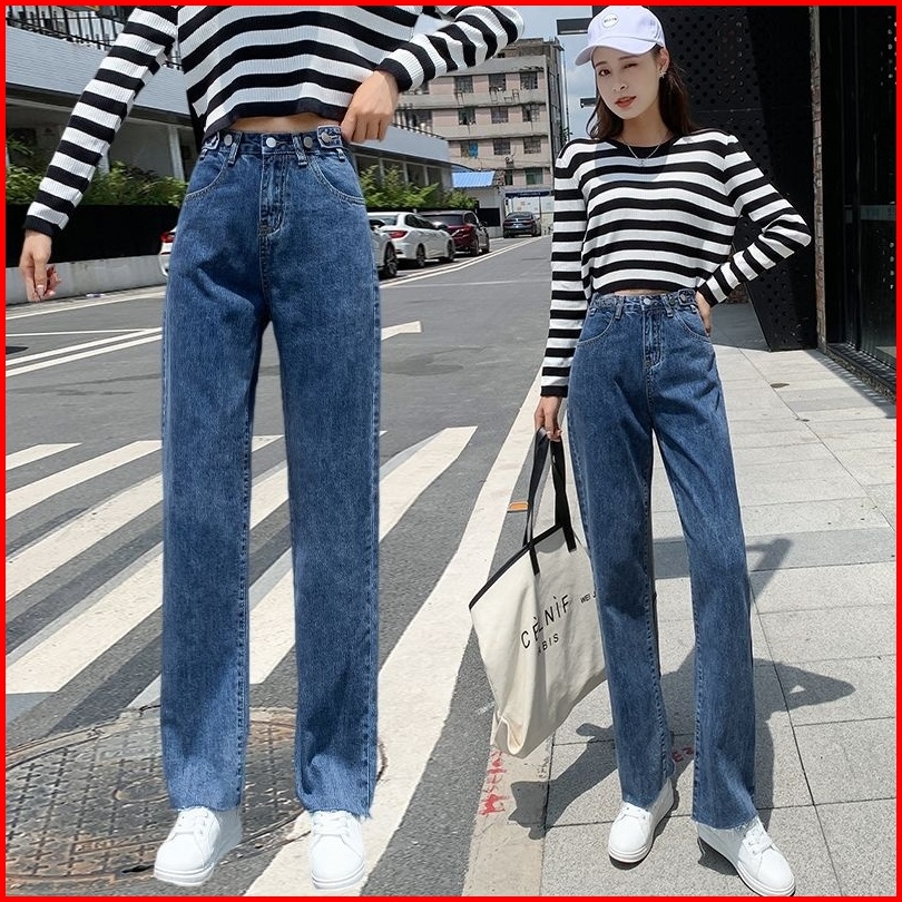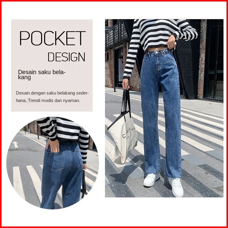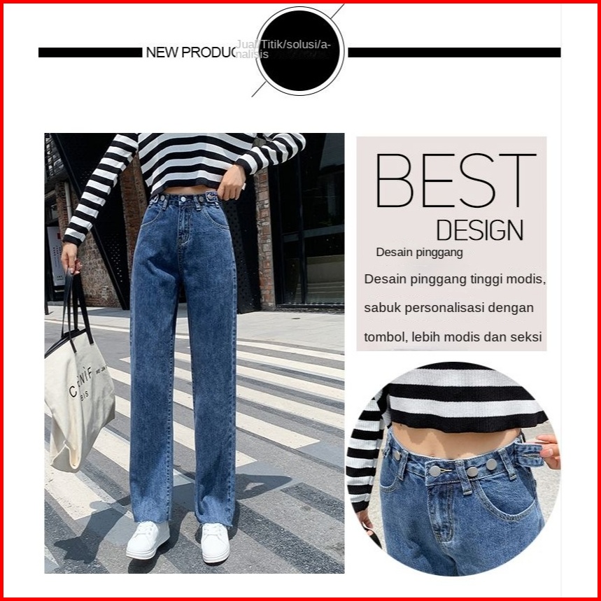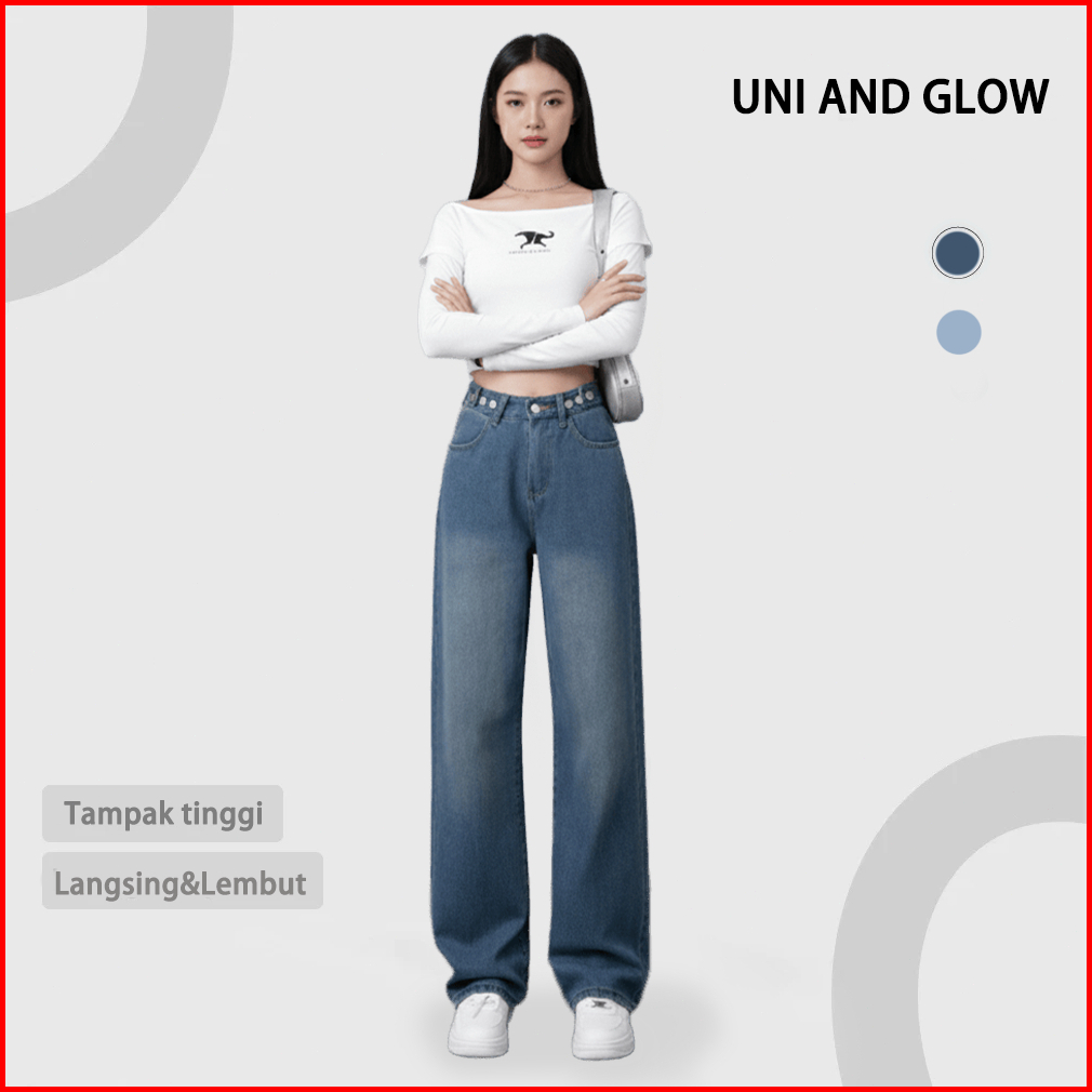Uni And Glow Eira Pants Celana Loose Jeans High-waist Wanita Navy Retro 2638