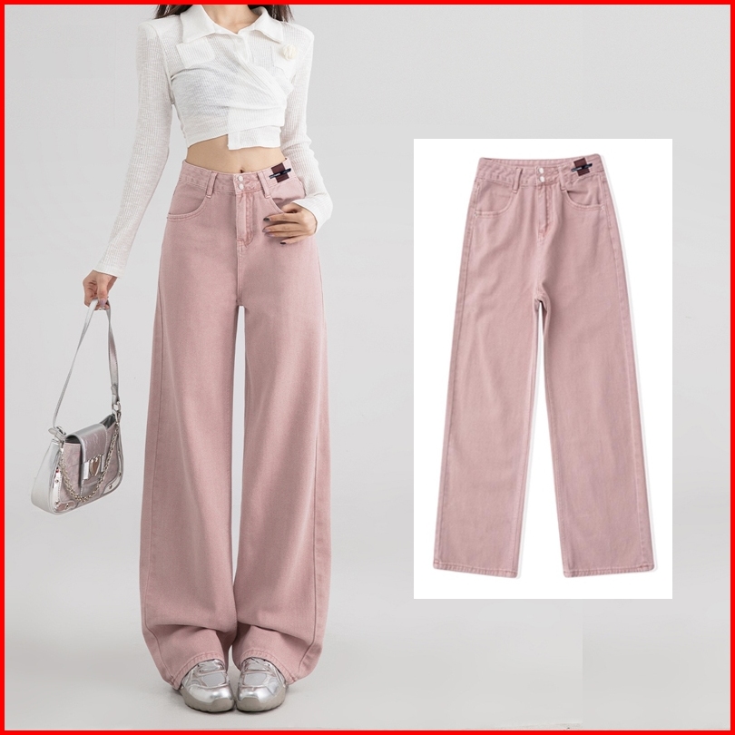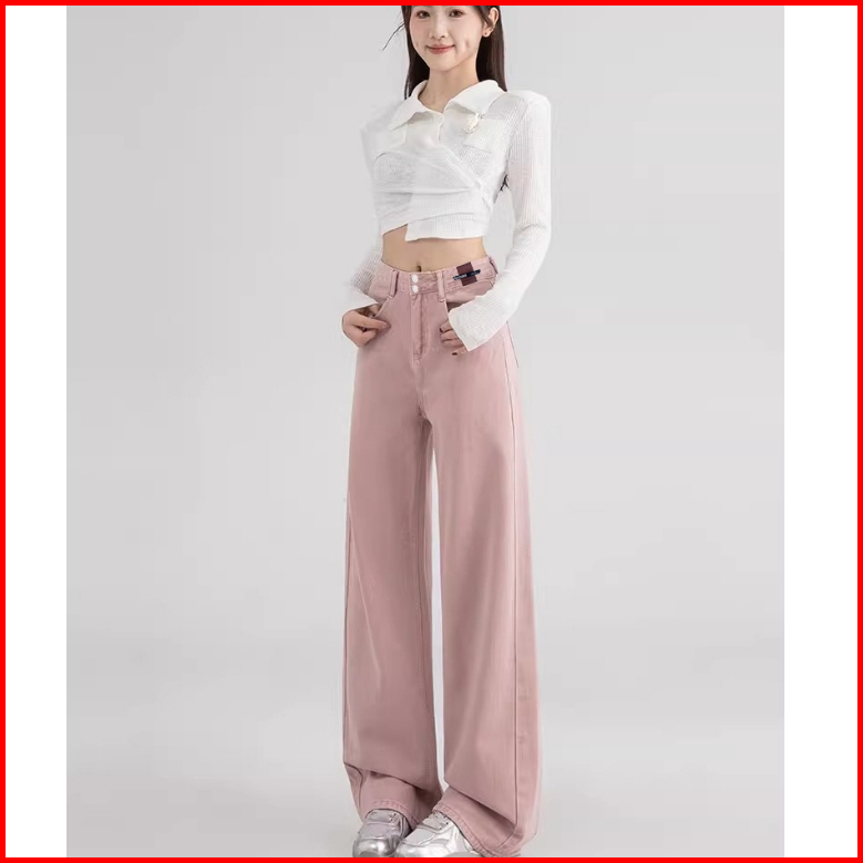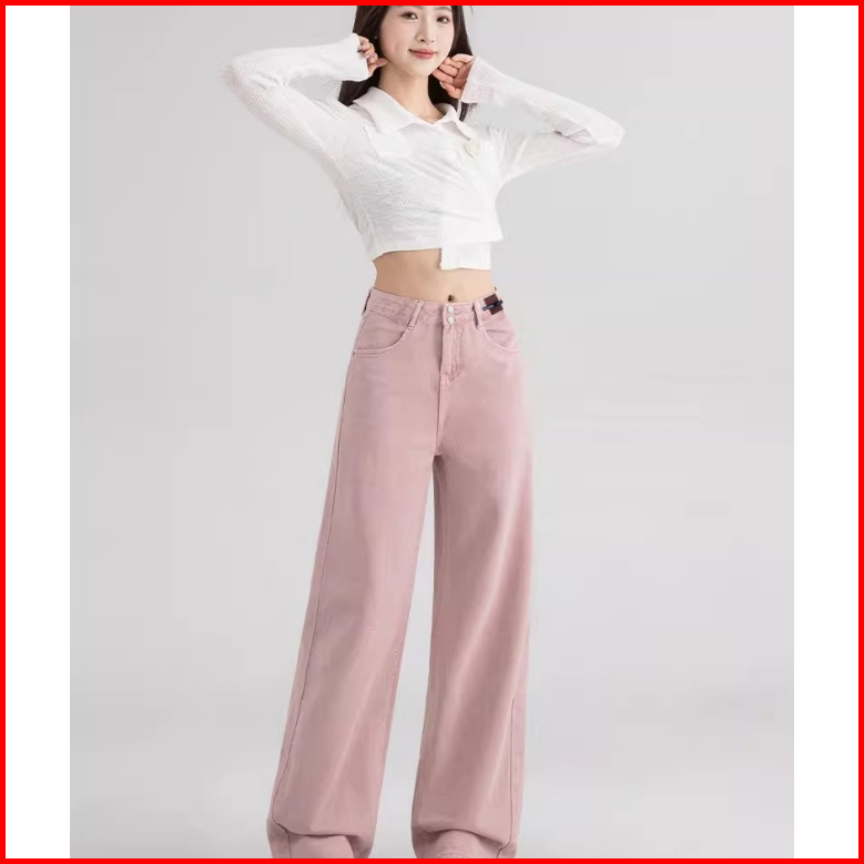 Keygirl Kulot Highwaist Jeans Pink Ukuran Jumbo Loose Pants Premium Straight Pants Denim Wanita