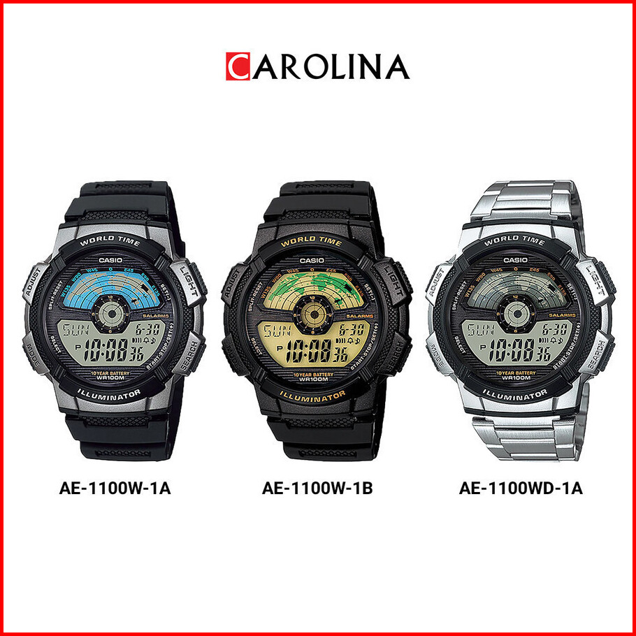 Jam Tangan Pria Casio Ae-1100wd-1a Digital Dial Stainless Steel Band